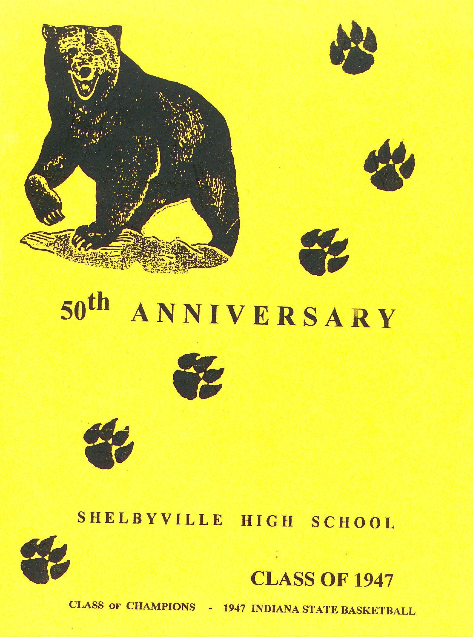 High School 50th Anniversary Reunion Booklet of the 1947 Shelbyville High School graduating class. Sub title indicates Class of 1947/Class of Champions - 1947 Indiana State Basketball
