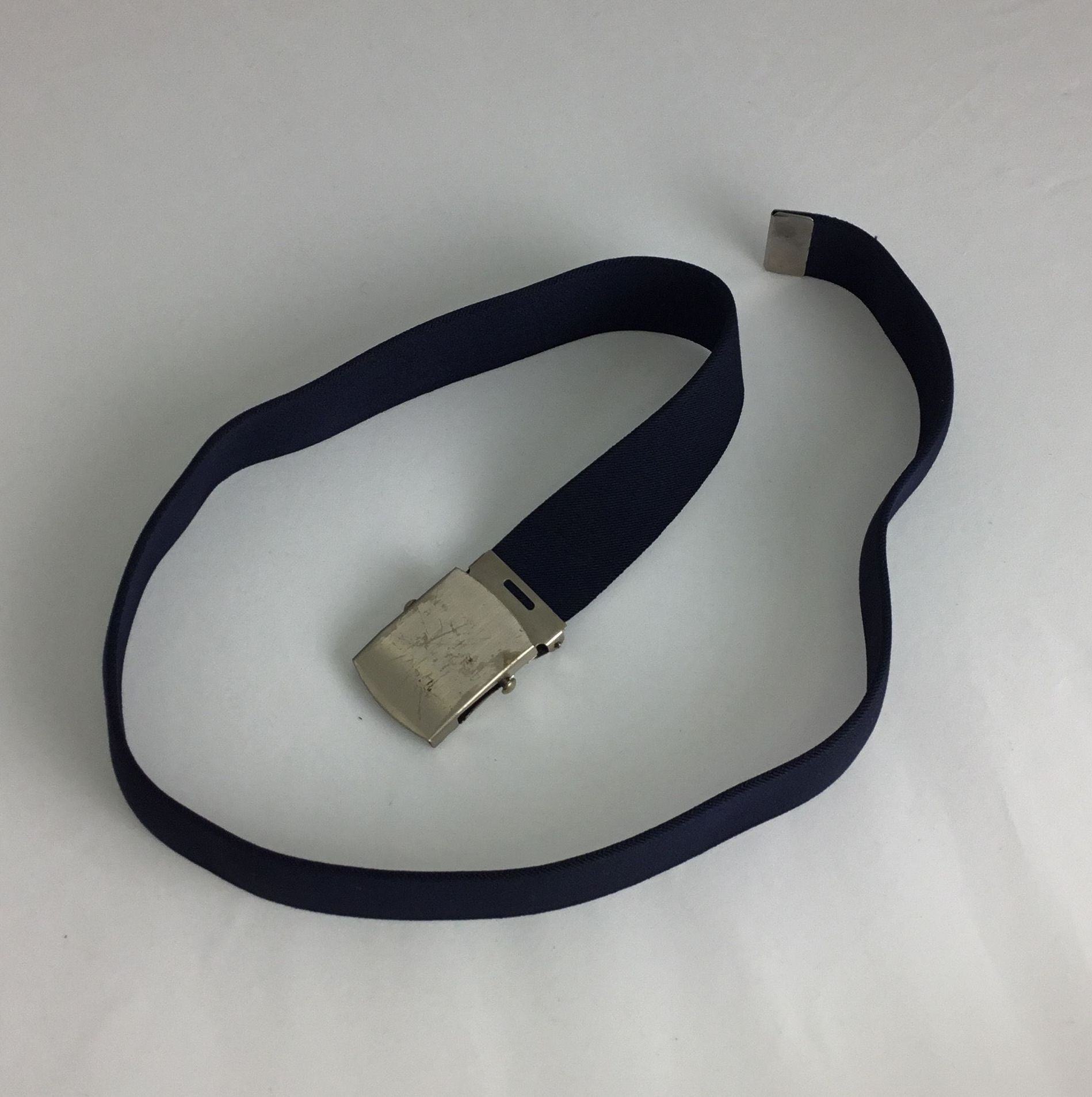 Dark blue Air Force belt. Metal clasp at either end. Embossed on the buckle is “Solid Brass”Collection