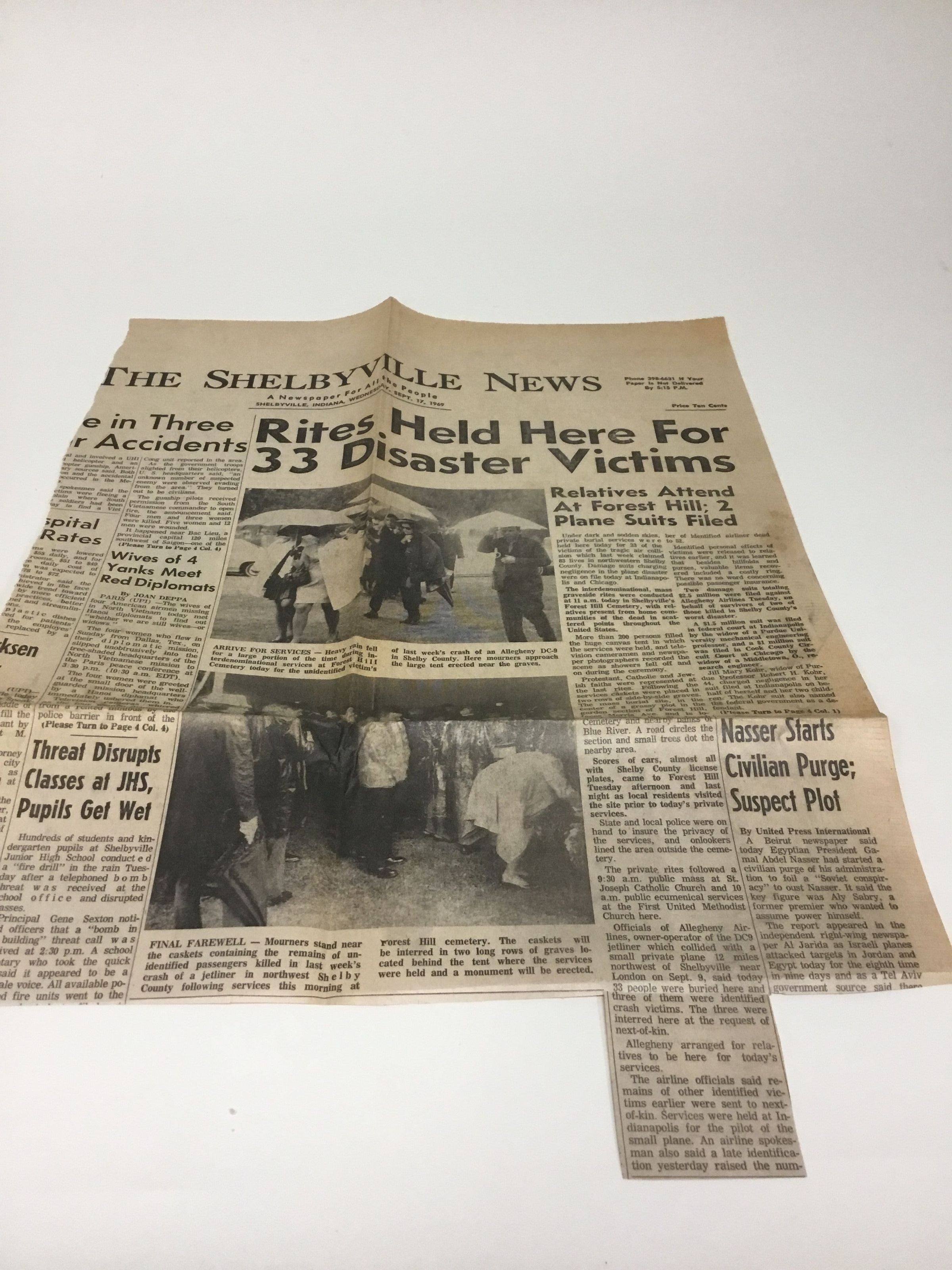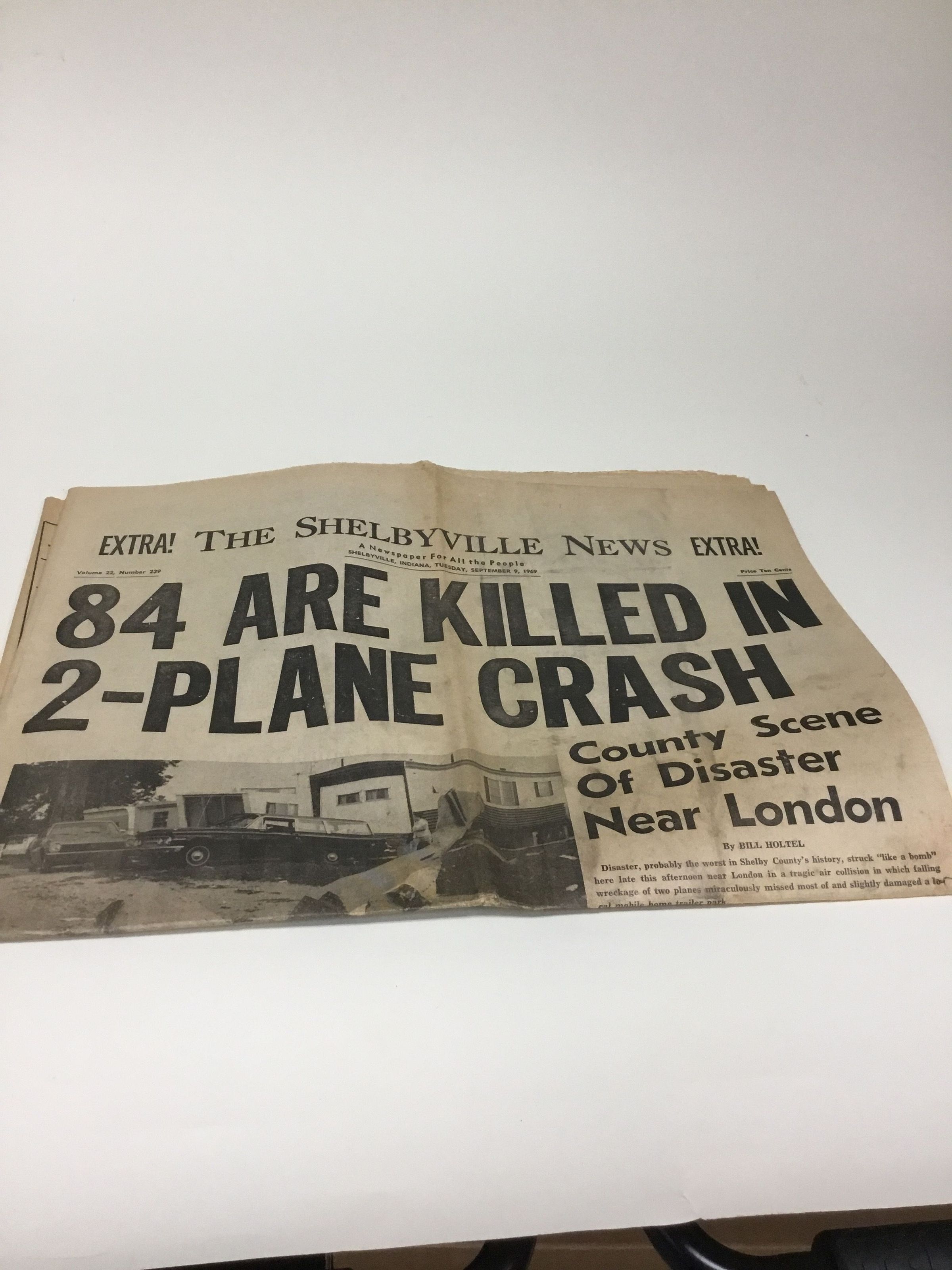 A. Shelbyville News headlines and article about Allegheny plane crash September 9,1969.