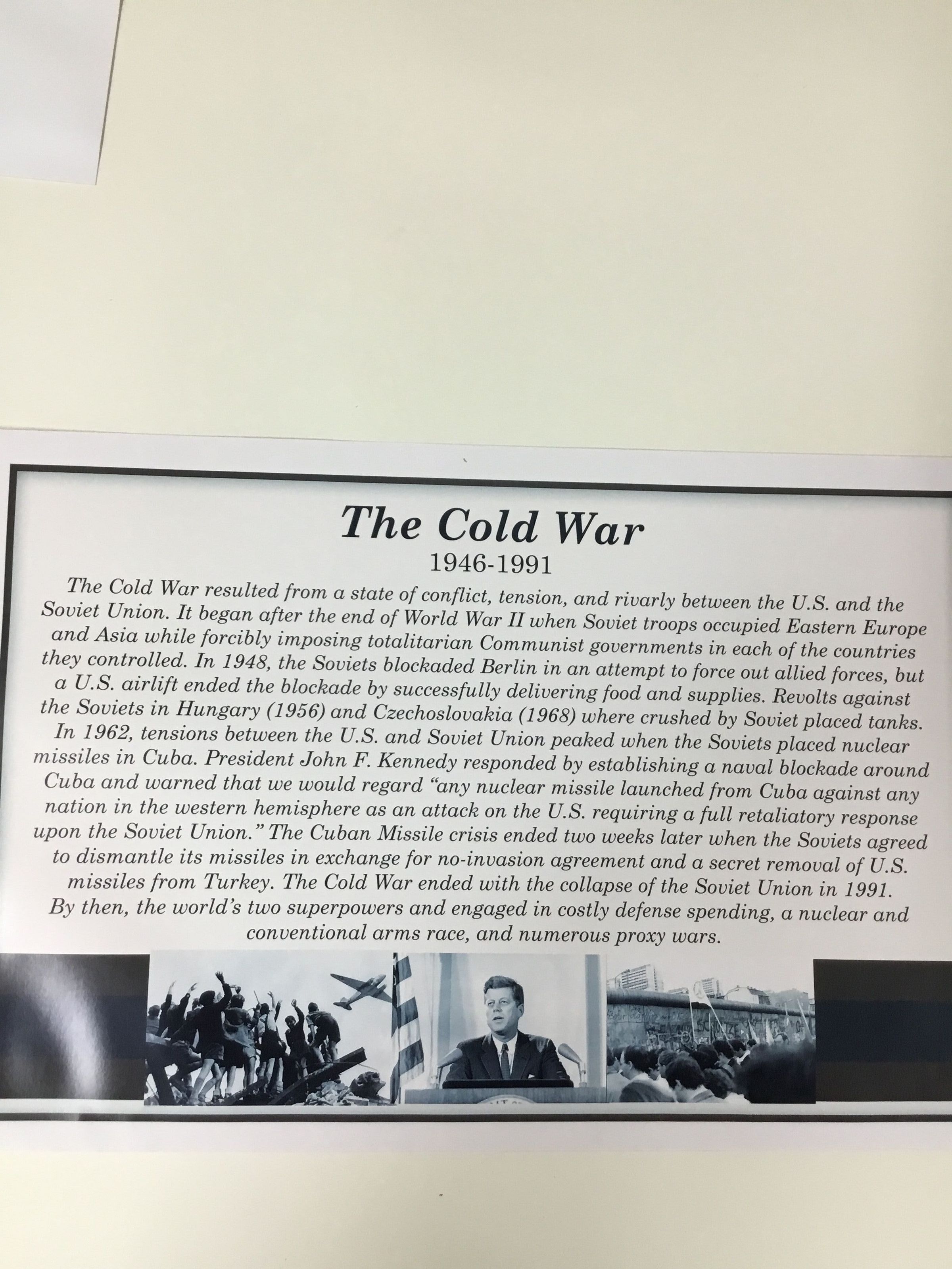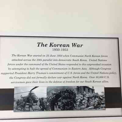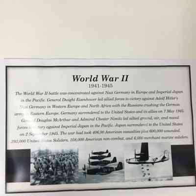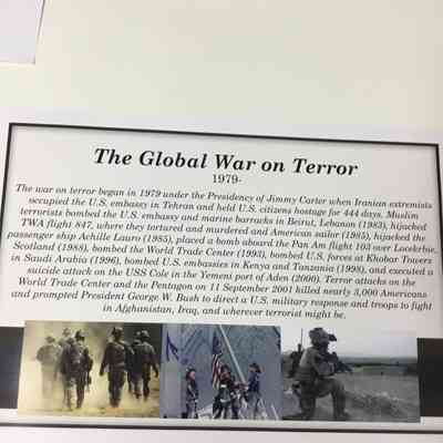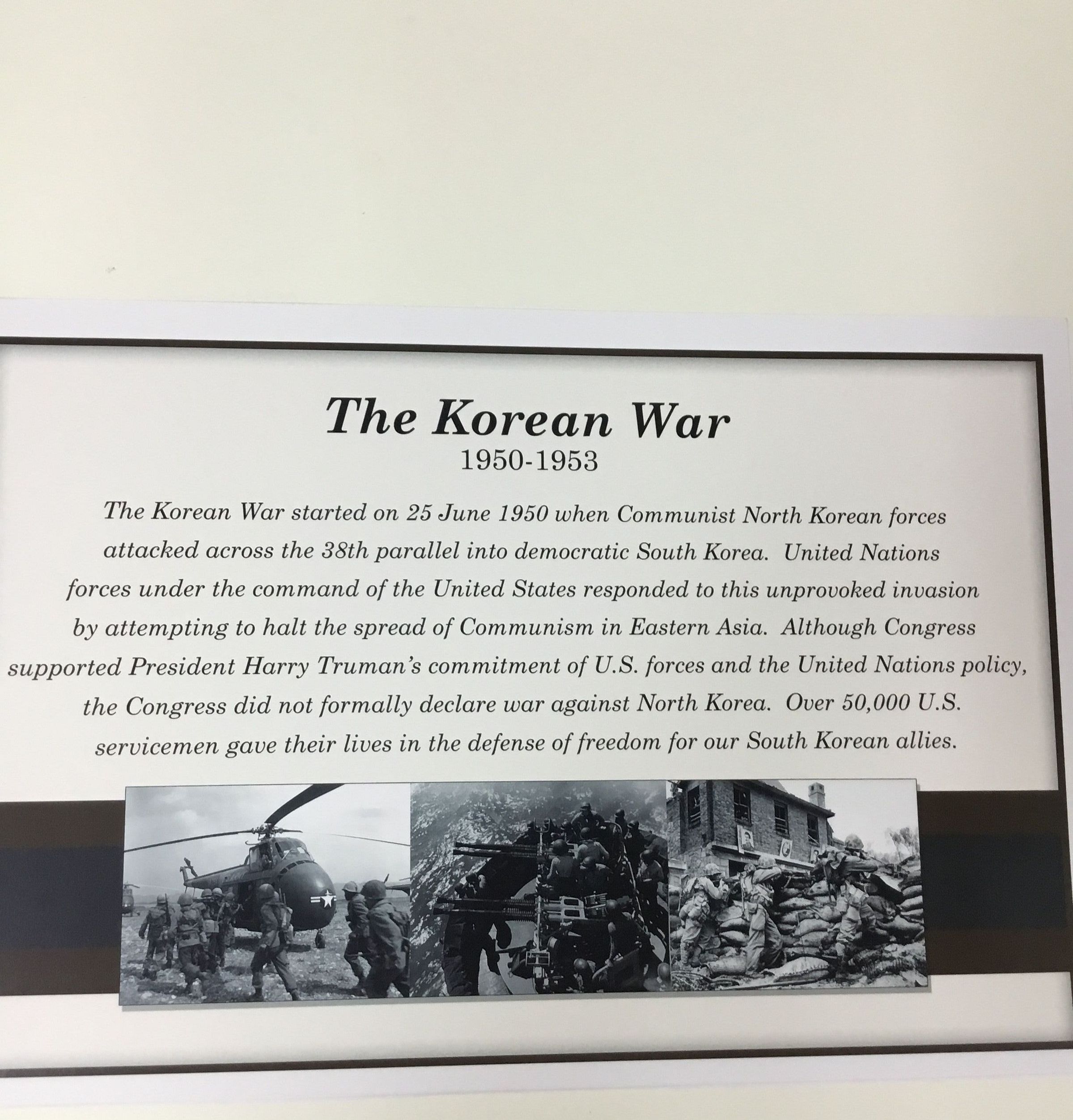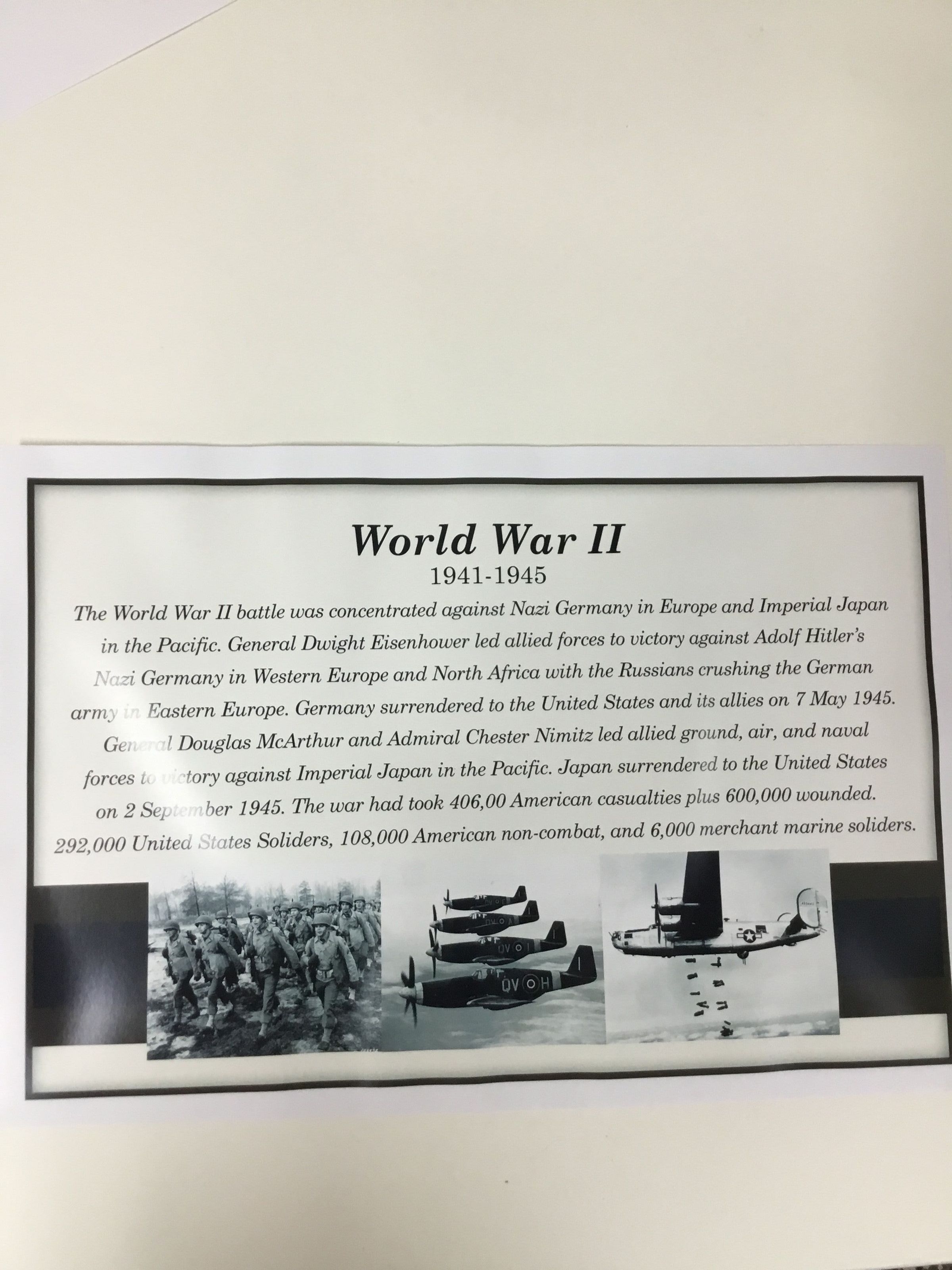 A collection of 6 photos and descriptions about the WWI, WWII, Korean War, Vietnam War, War on Terror from 1917 to 2001.Collection