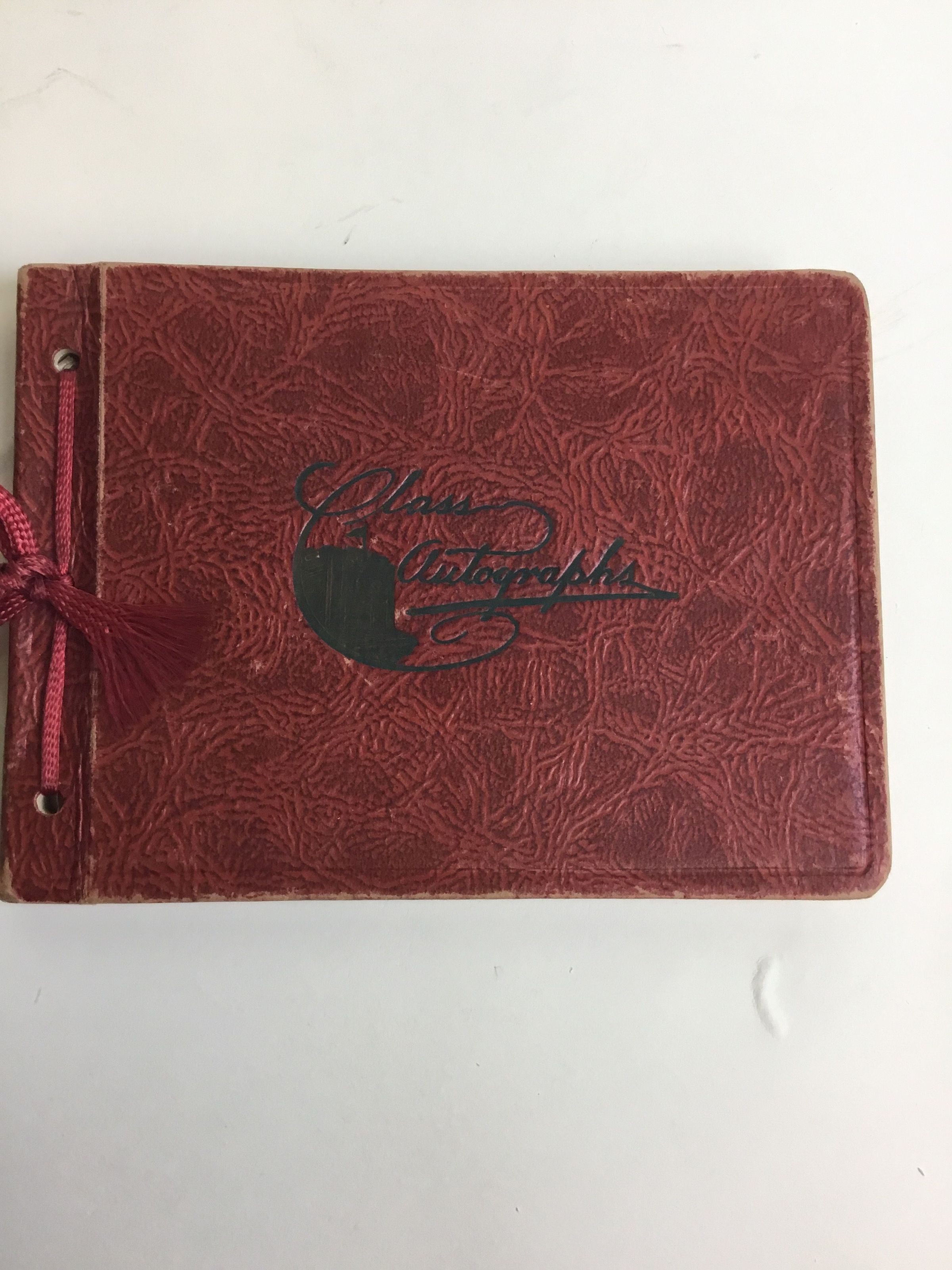 Red leather cover class autograph book bound with red ribbon, circa 1937 with stories, autographs from a Shelbyville high school class members.Collection