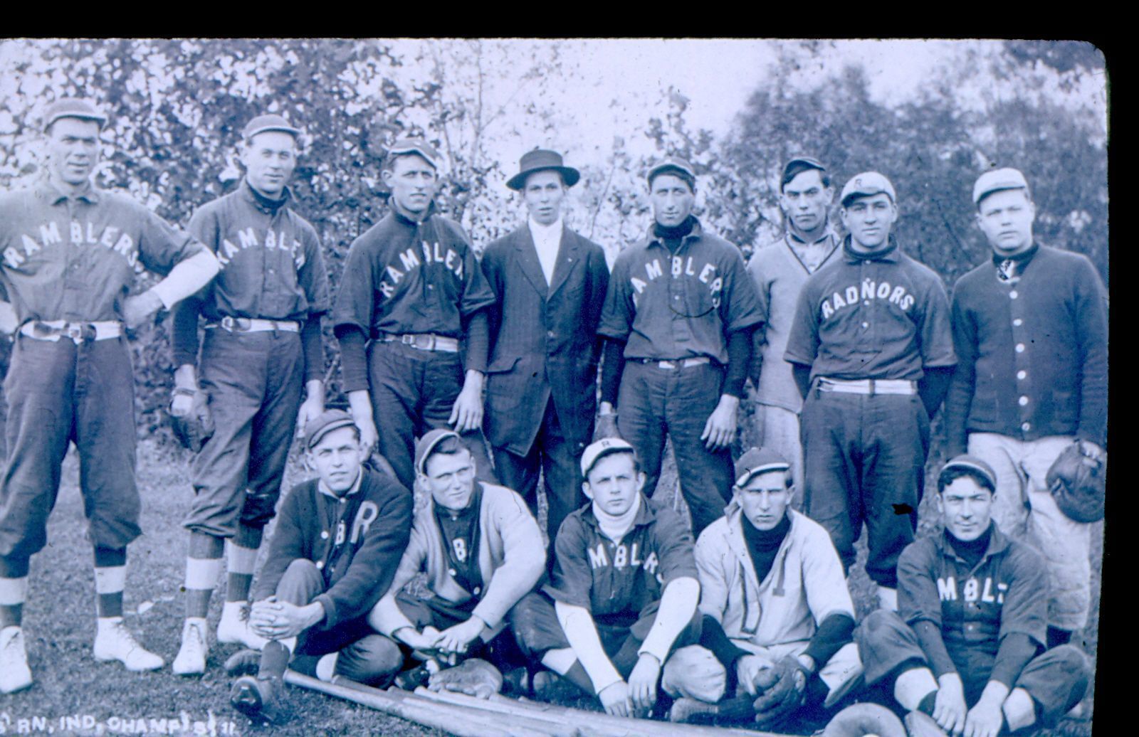 Black and white photographic slide in landscape format. Slide frame is marked: "Baseball Team."Collection