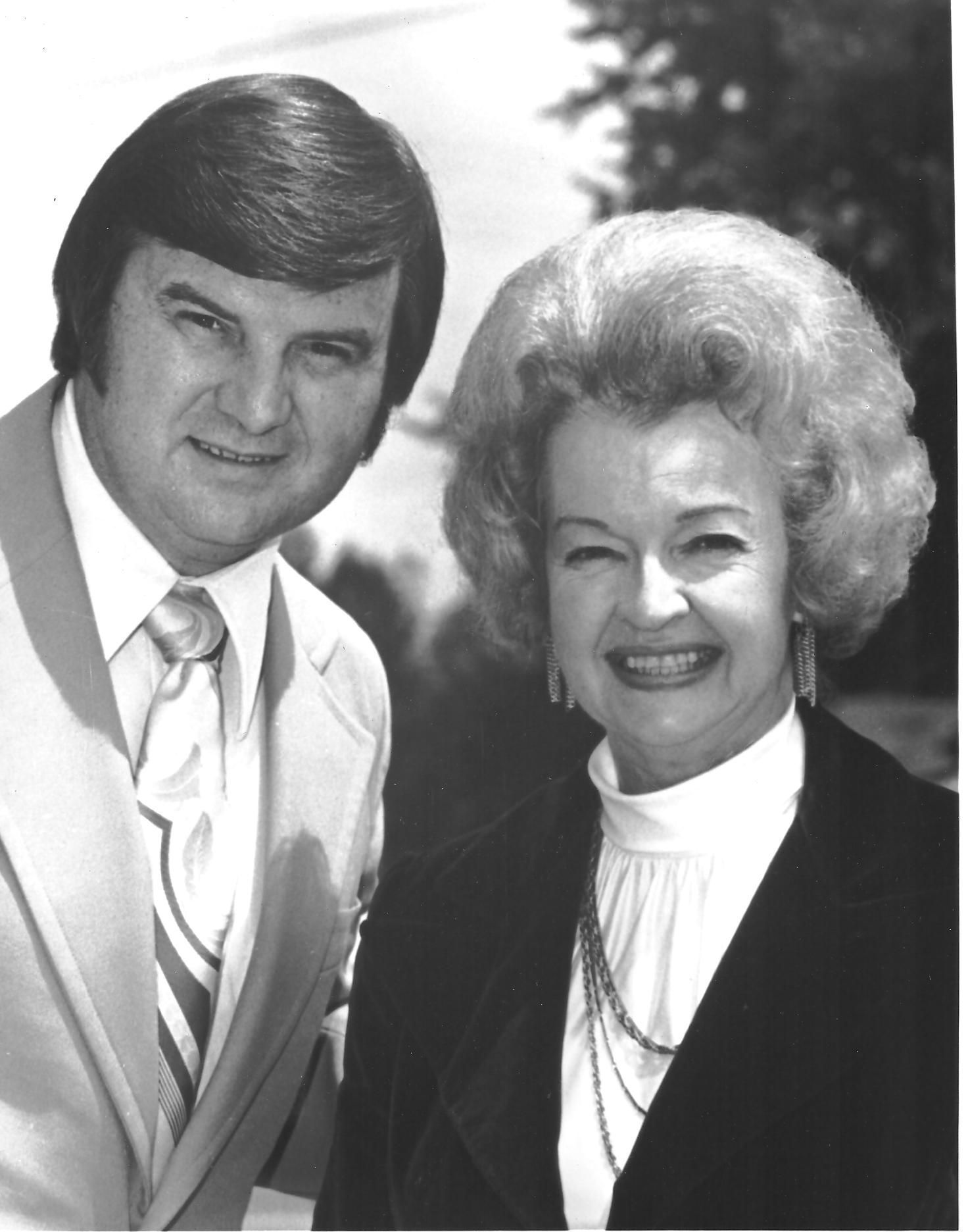 Black and white glossy photograph in portrait format. Image is of Dick Baxter, Manager/Agent and Dale Evans, his client. Duplicate of 06.230.10Collection