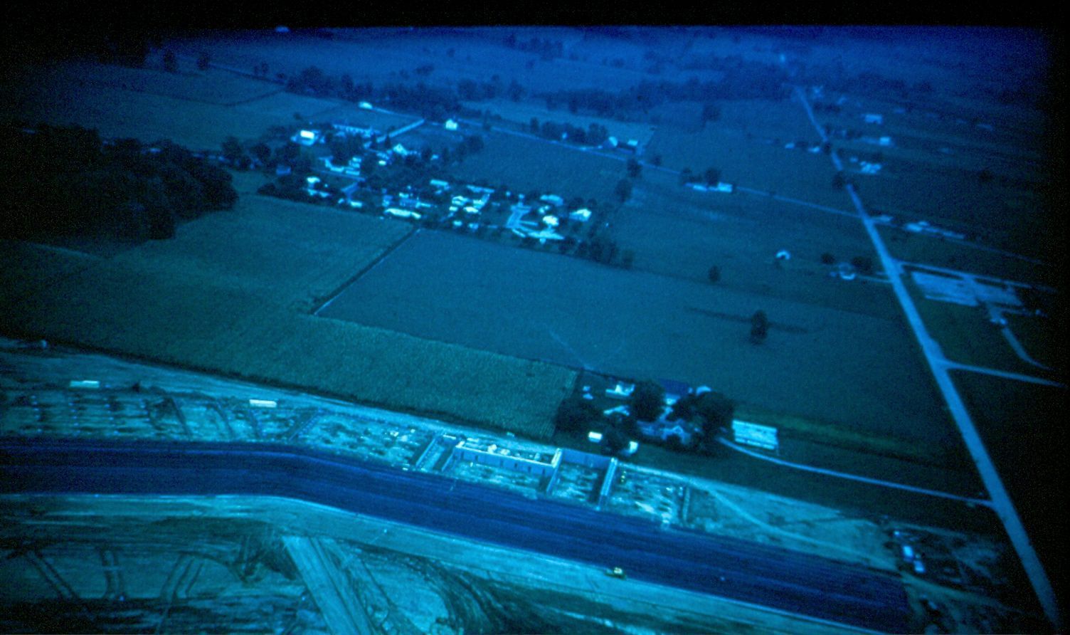 Color photographic slide in landscape format. Slide frame is marked: "Arial view/Belaire/