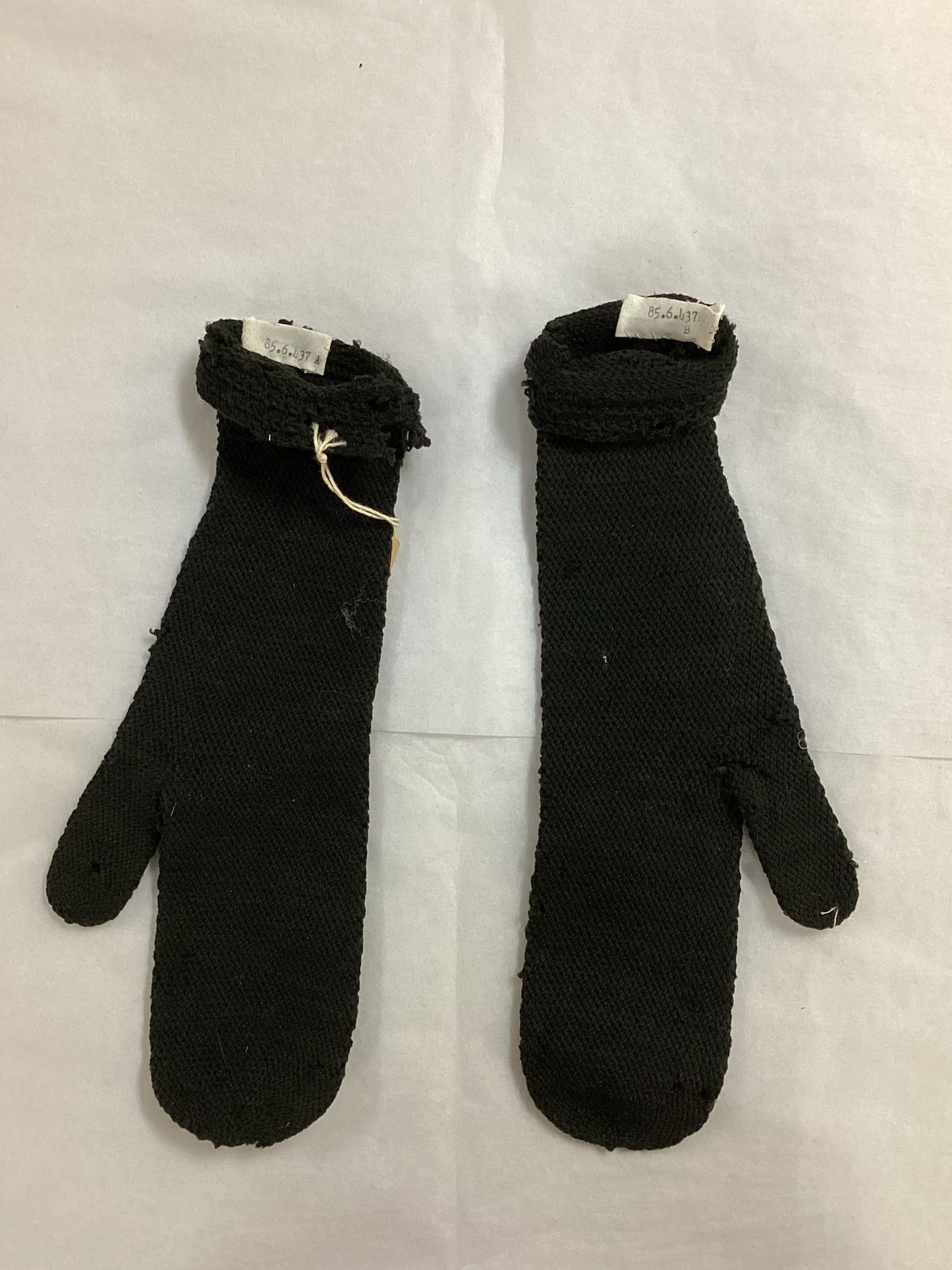 Black fine knit with 2 groups of 3 narrow raised knit bands near the top. 3/4" of crocheded knit. Sub-numbered A & B.Collection