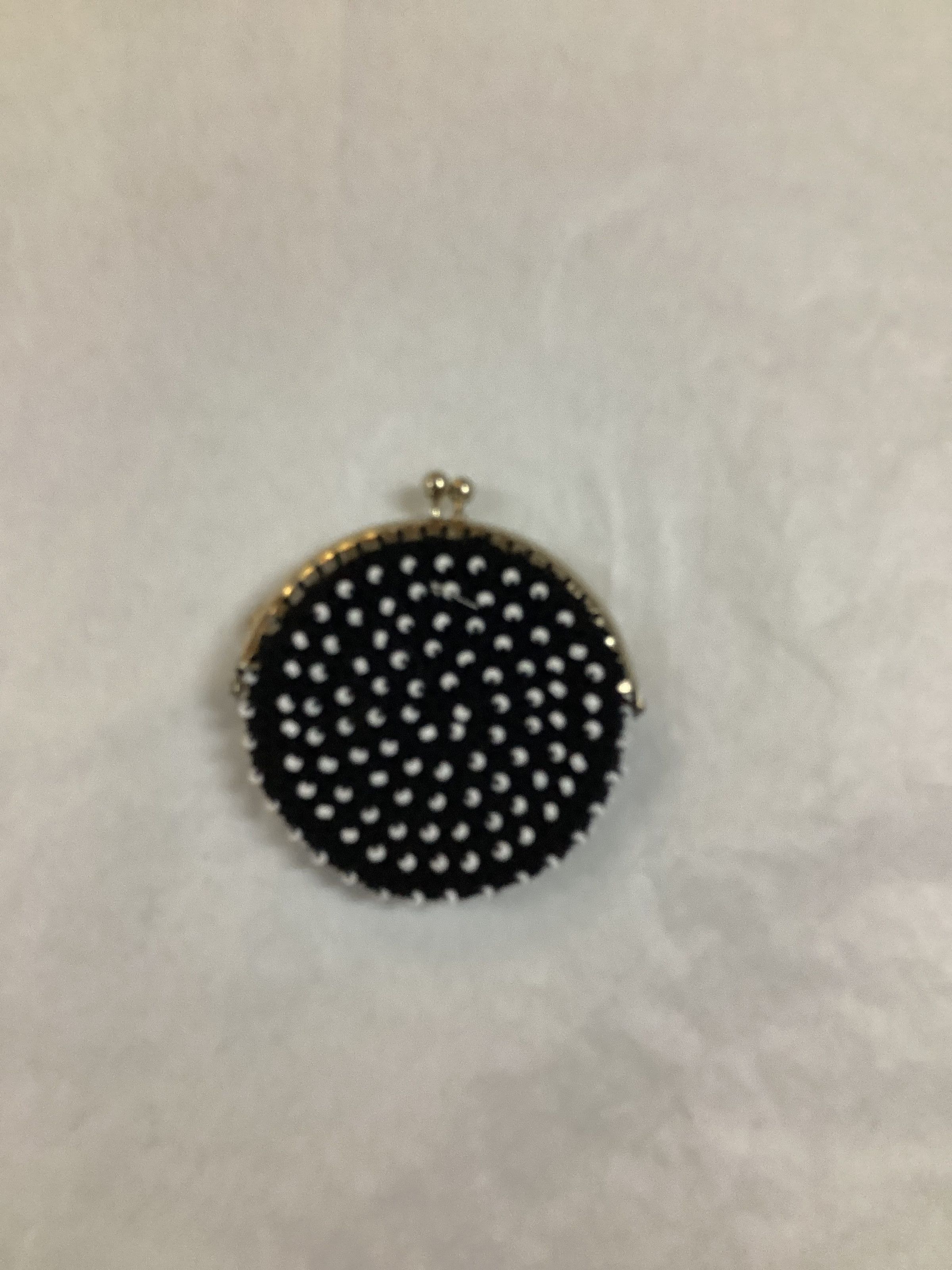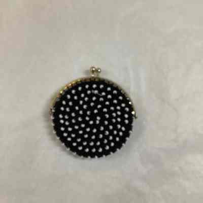 B: coin purse, round, on chain, white beads on black material, 3" diameterCollection