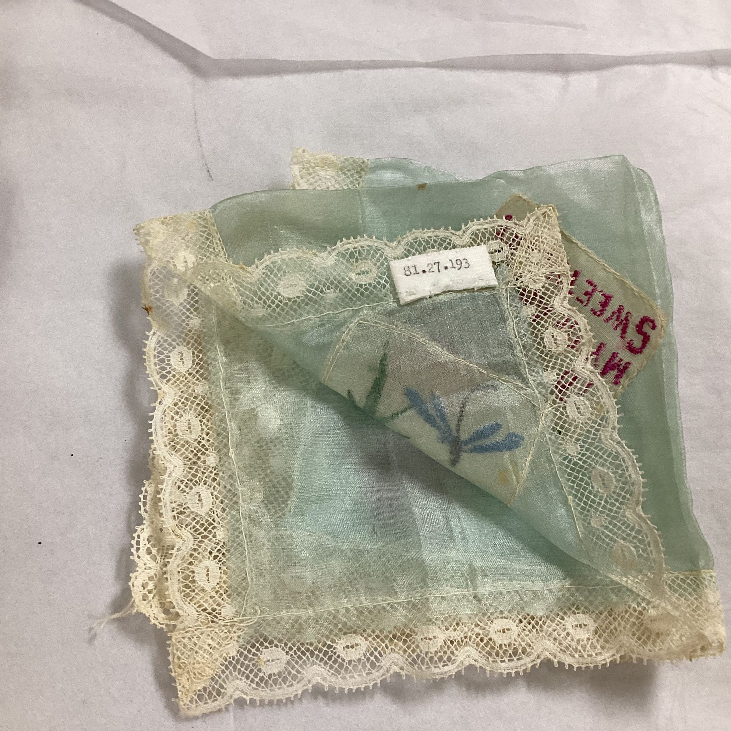 Blue silk handerchief with words "To My Dear Sweetheart."