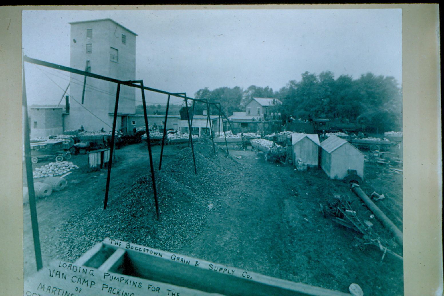 Black and white photographic slide in landscape format. Slide frame is marked: "Pumpkins/