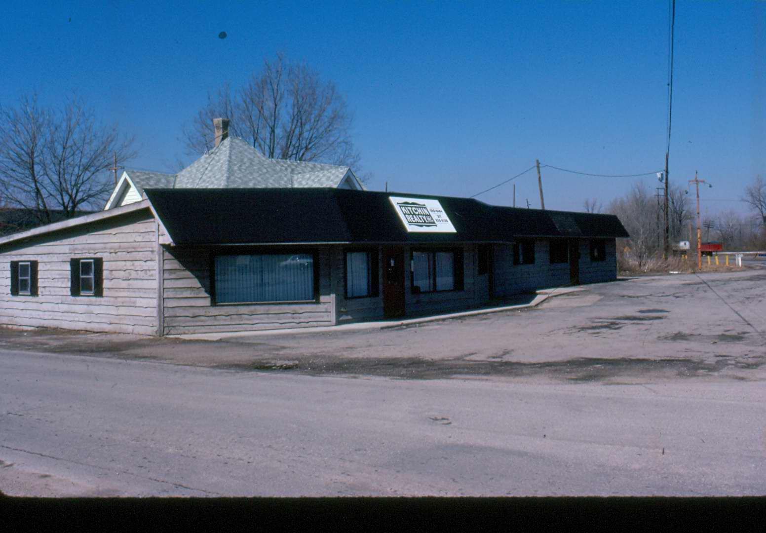 Donation, 07/26/2005. Color photographic slide in landscape format. Frame is marked: "Corner at Boggstown/Road." Single-story building. "Kitchin Realty" is on sign.Collection
