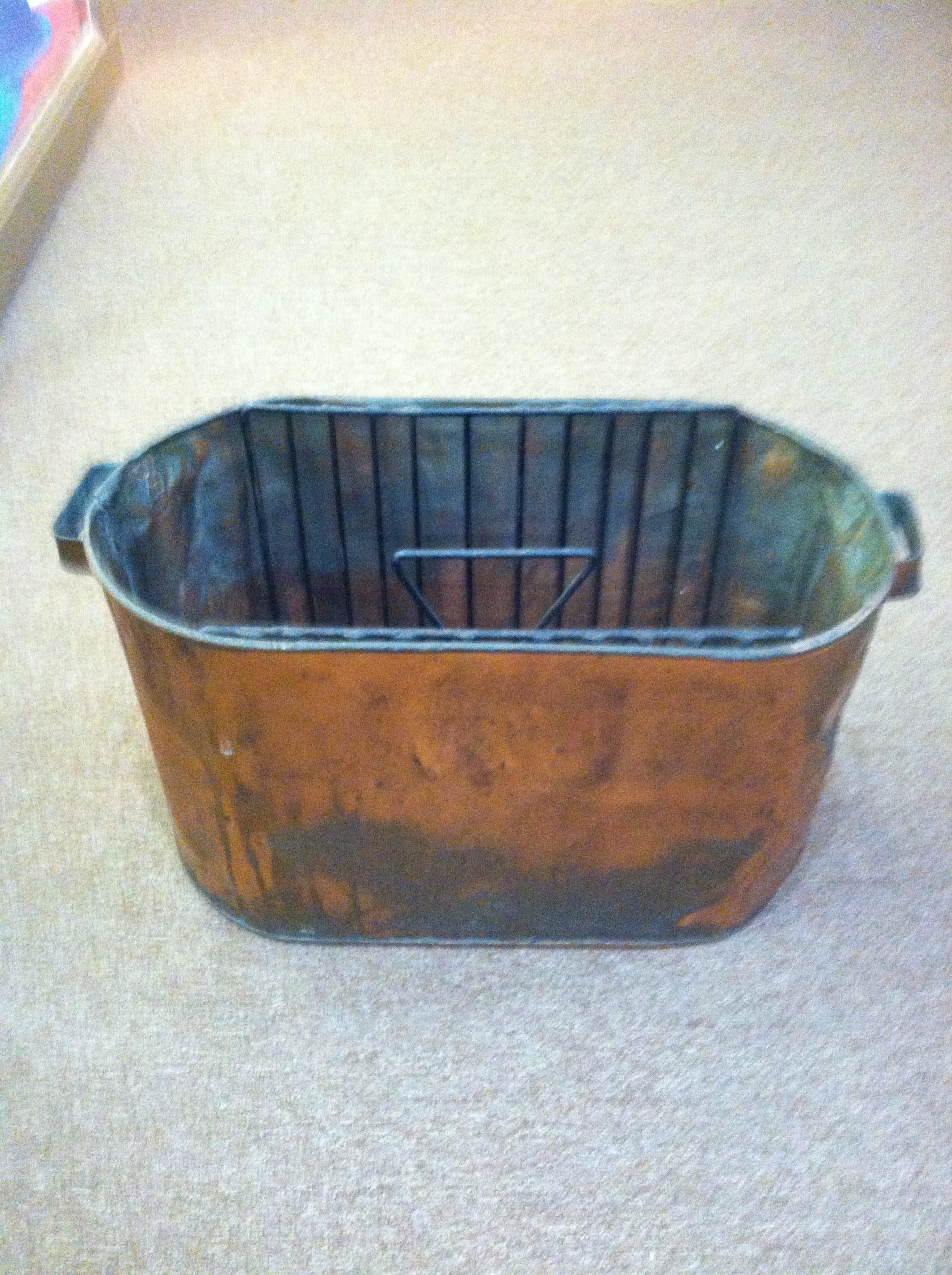 Wash boiler entirely handmade of copper. c.1850 John made it into a magazine rack as a 4H project so it has a metal insert permanently attached.Collection