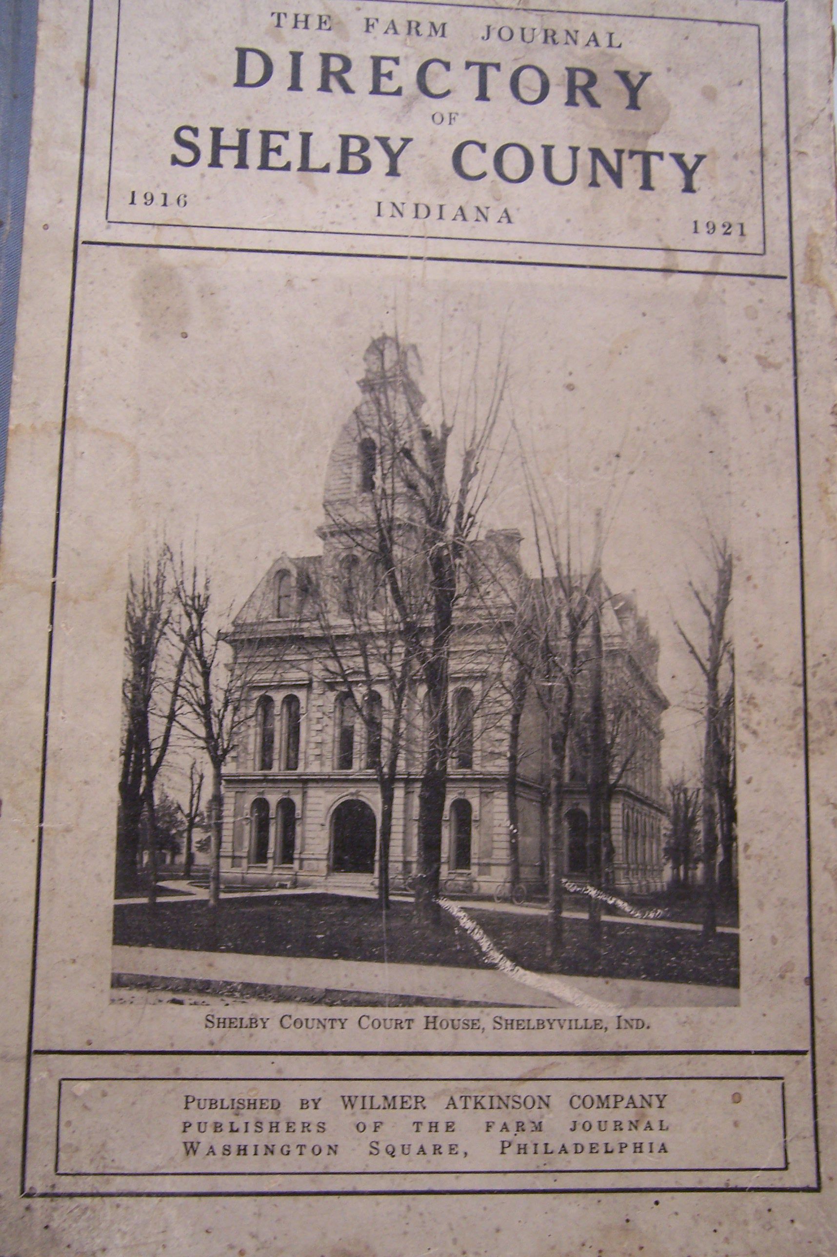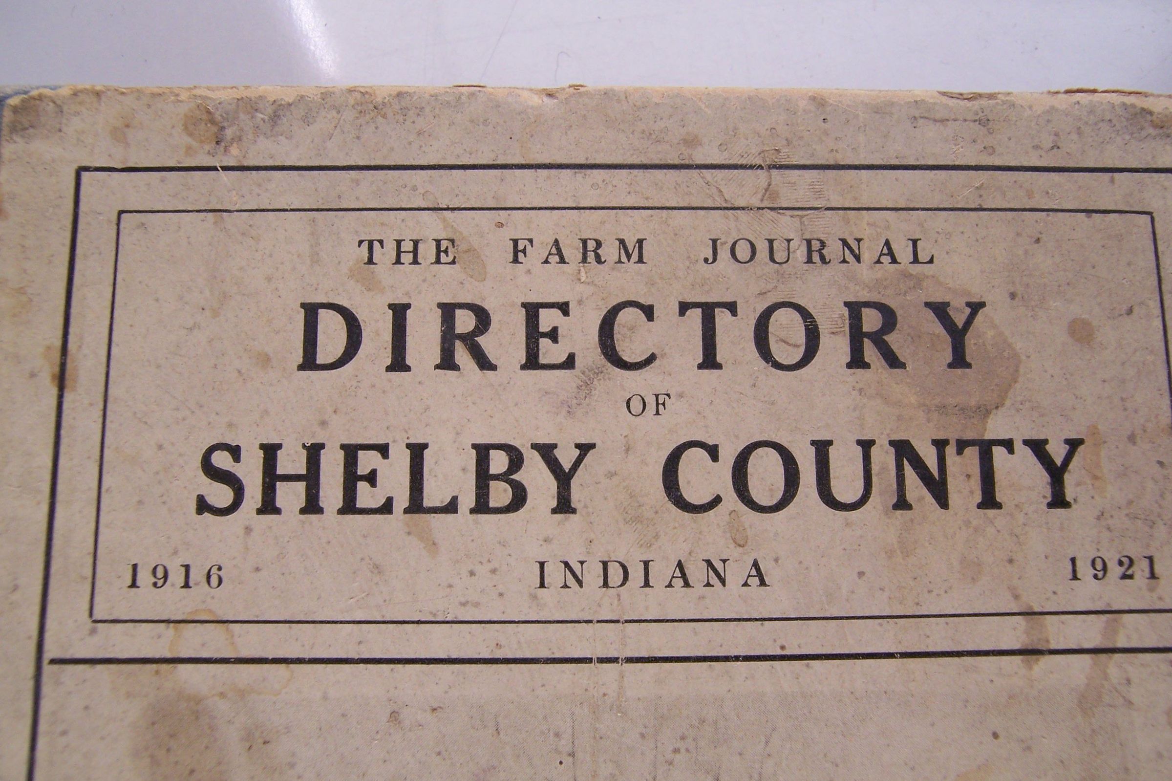 Directory of Shelby County, Indiana, 1916-1921. Contains 224 numbered pages with some advertising and helpful household tips. Directory of Shelby County, Indiana residents and Shelby County business listings.Collection