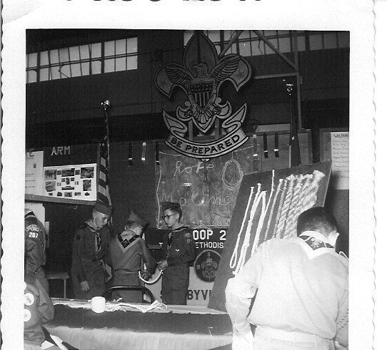 E: inscribed on back of photo is "Scout Troop #207/Scout Fair 1959/Rope Making/Blue ribbon winner" (may be Paul Weber, son of donor)Collection