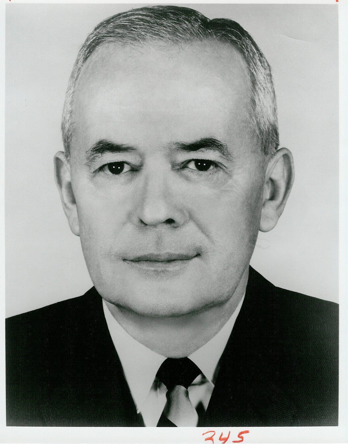 Black and white glossy photographic print of a man in dark suit, white shirt, dark tie, dark eyes, dark eyebrows, salt and pepper hair. Photo is of ROGER D. BRANIGAN when he was the Democratic Candidate for Indiana's Governor.