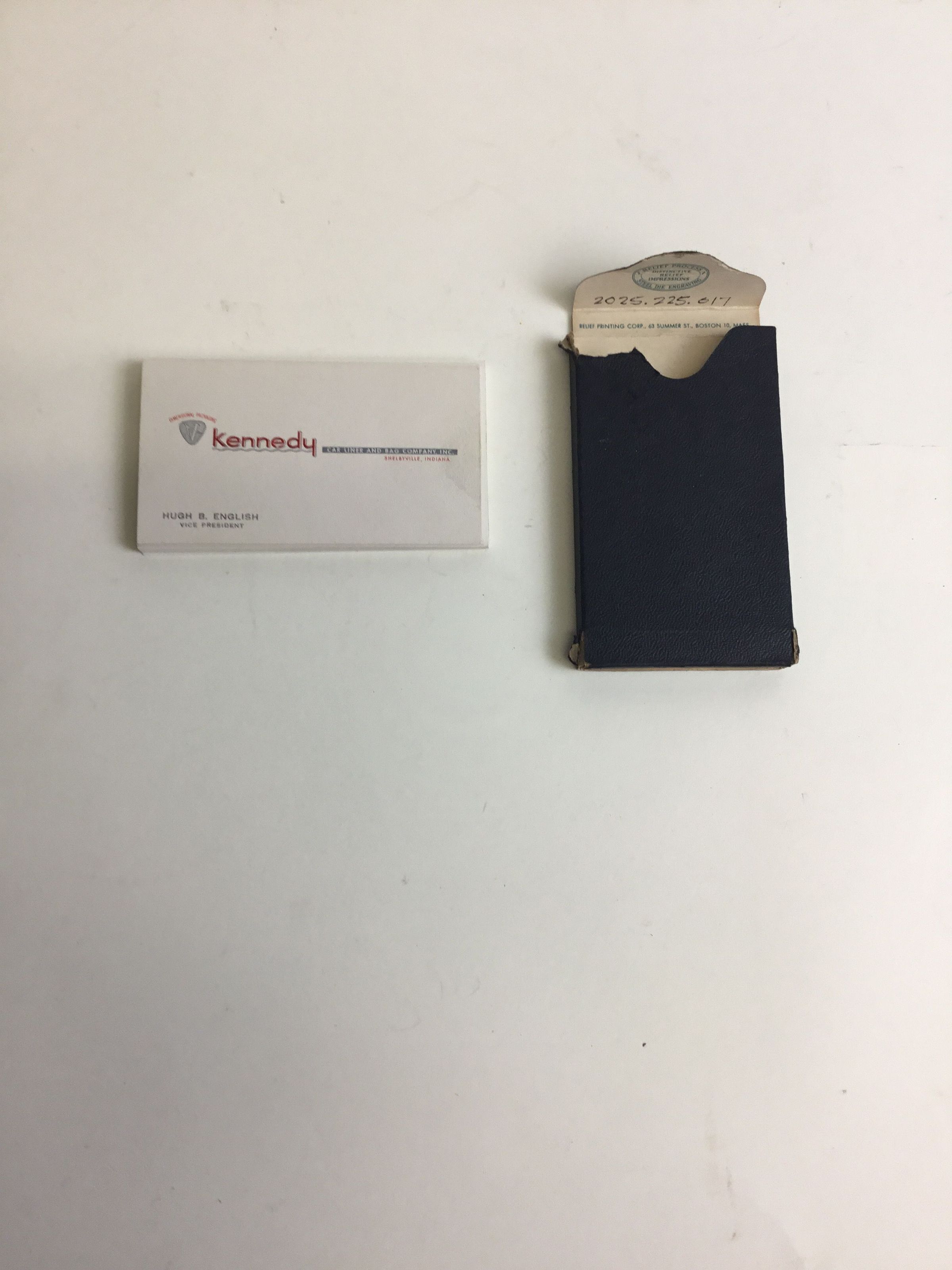 Business cards of Hugh B. English, Vice President, Kennedy Car Liner and Bag Company in black box.Collection