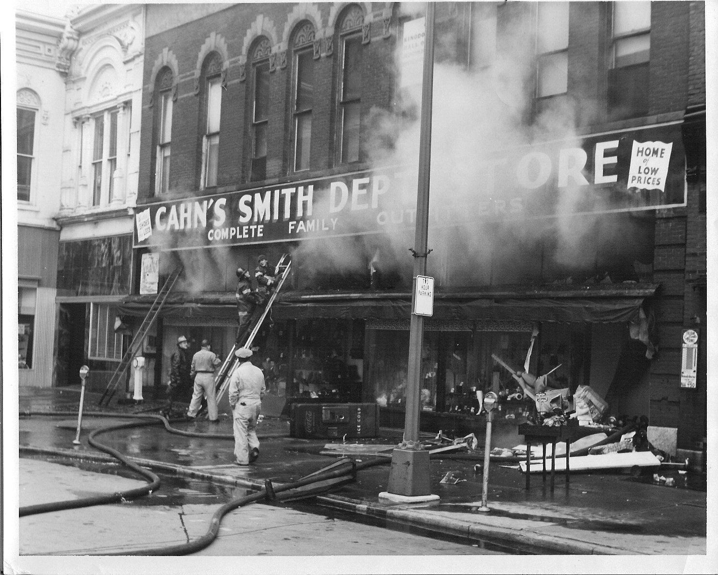 Smith Dept. Store". On back of photo: "Fire at Smith's Dept. Store on S. W./Dec. 5, 1954".Collection