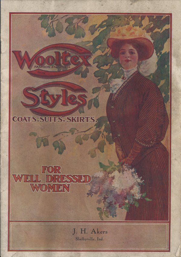 "Wooltex Styles" coats, suits, skirts for well dressed women; name of a local merchant J.H. Akers, Shelbyville, Ind., is printed on the front cover. 16 pages, displaying seasonal styles of clothing.