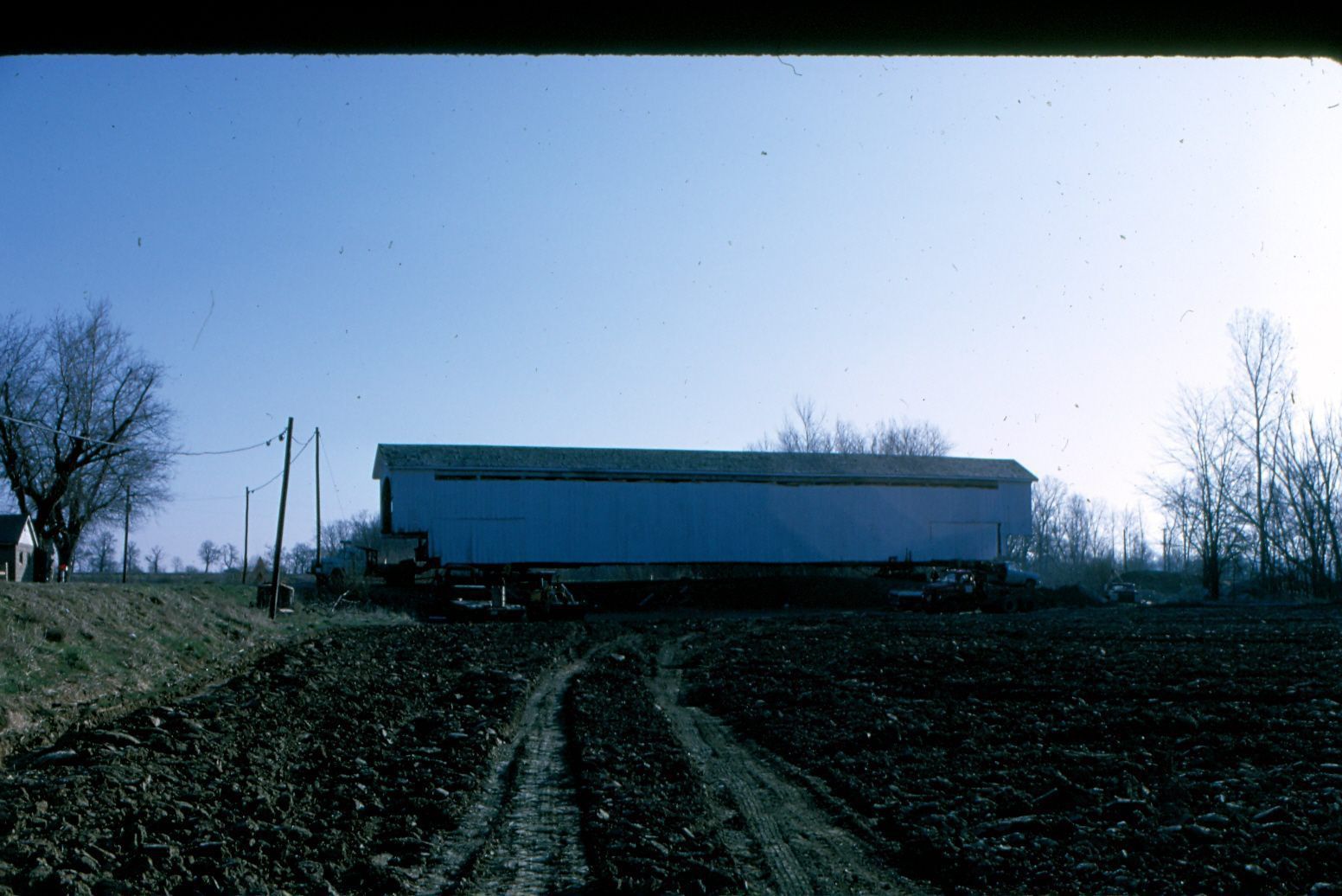 Donation, 07/26/2005. Color photographic slide in landscape format. Slide frame is marked: " Moving of/Cedar Ford Bridge."Collection