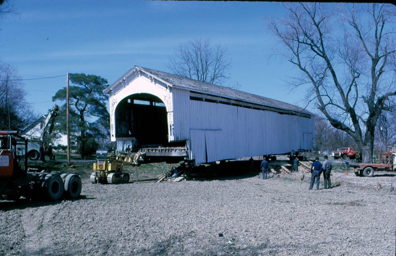 Donation, 07/26/2005. Color photographic slide in landscape format. Slide frame marked: "Moving of/Cedar Ford Bridge."Collection