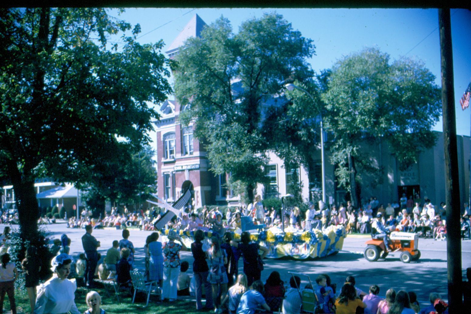 Donation, 07/26/2005. Color photographic slide in landscape format. Slide frame is marked: "Cent. Parade:" Grover Museum can be seen in the background.Collection