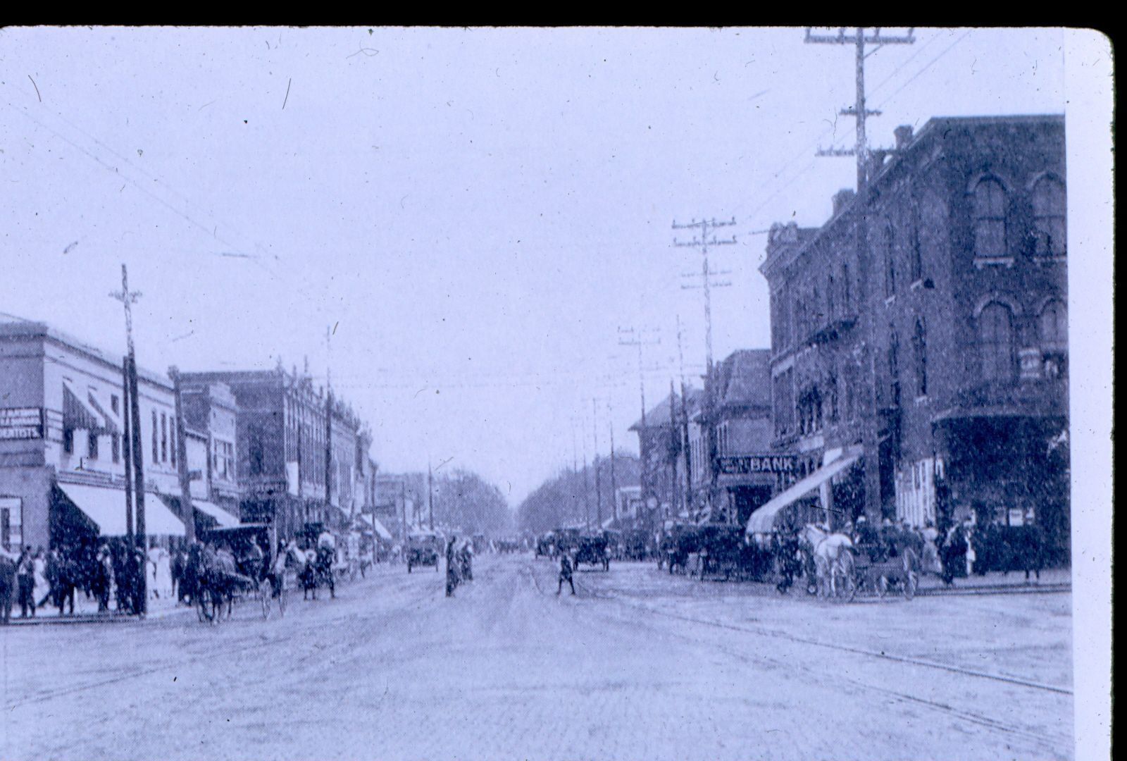 Donation, 07/26/2005. Black and white photographic slide in landscape format. Slide frame is marked: "S. Harrison from P.S./1915" Slide is a copy of an older photograph.Collection