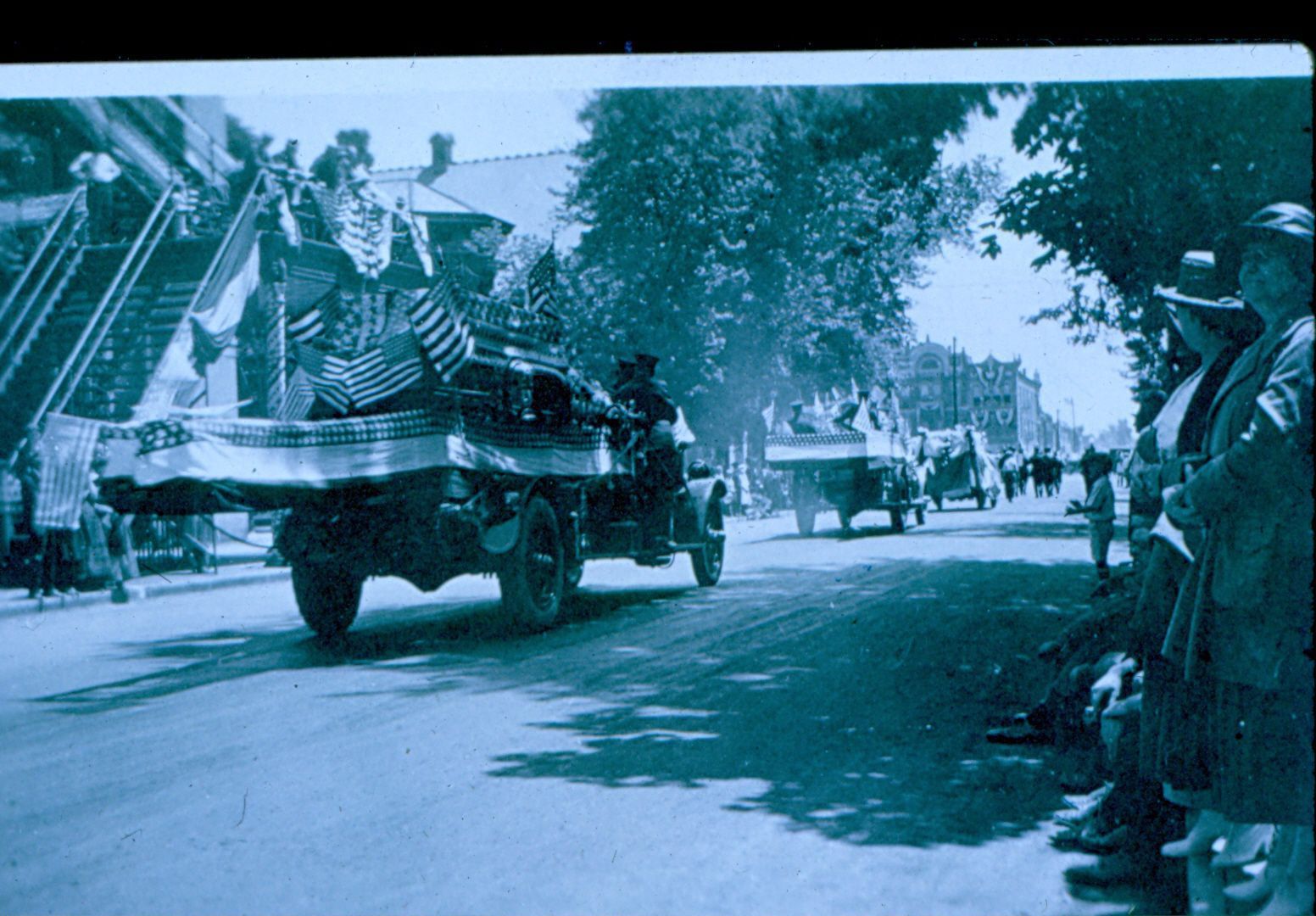 Donation, 07/26/2005. Black and white photographic slide in landscape format. Centennial Parade on West Washington Street in front of City Hall 1922.Collection