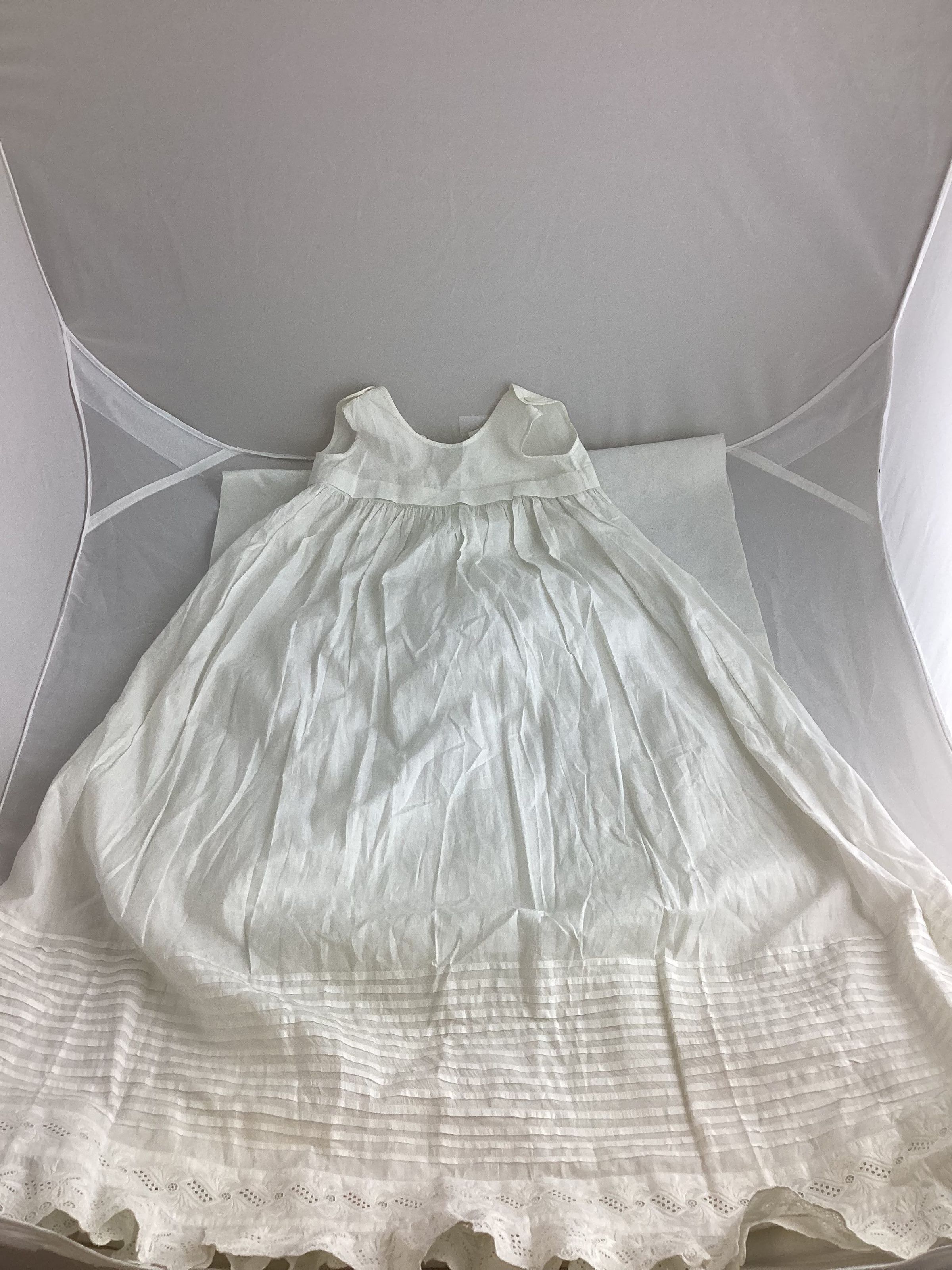 Petticoat, white cotton, built-up shoulder, button on shoulder, button down back.