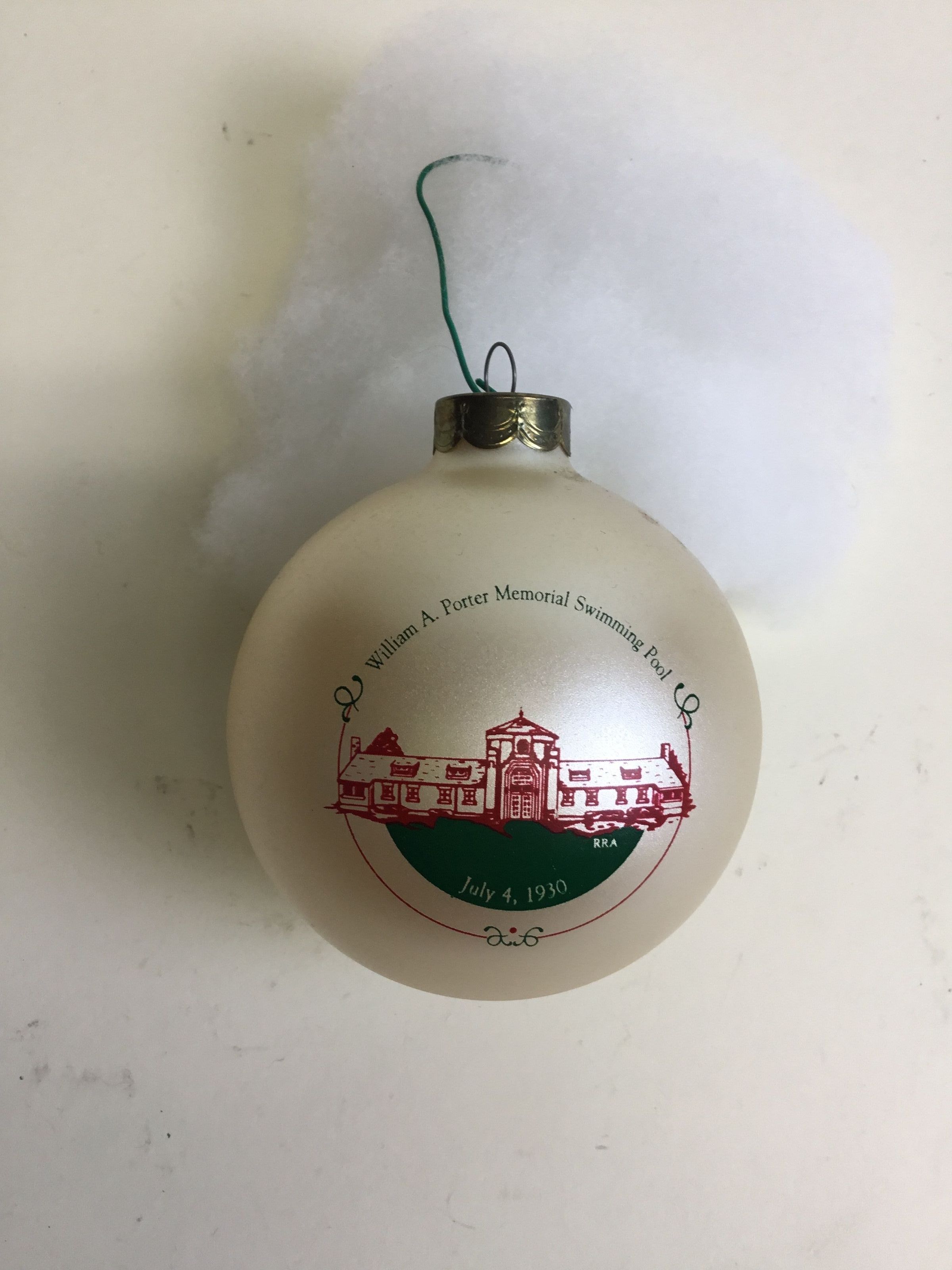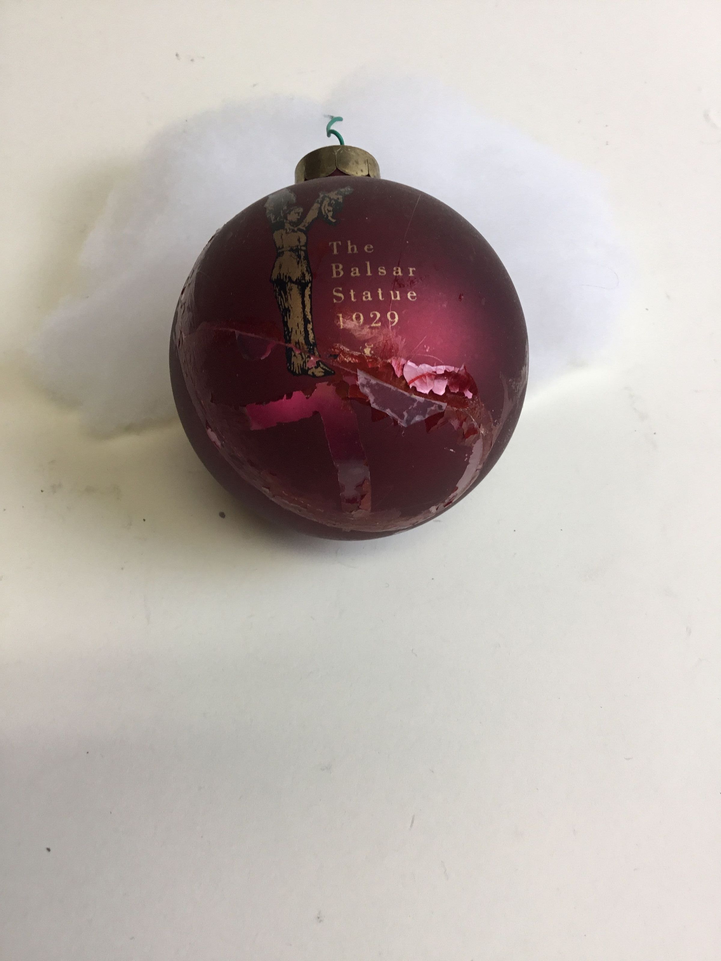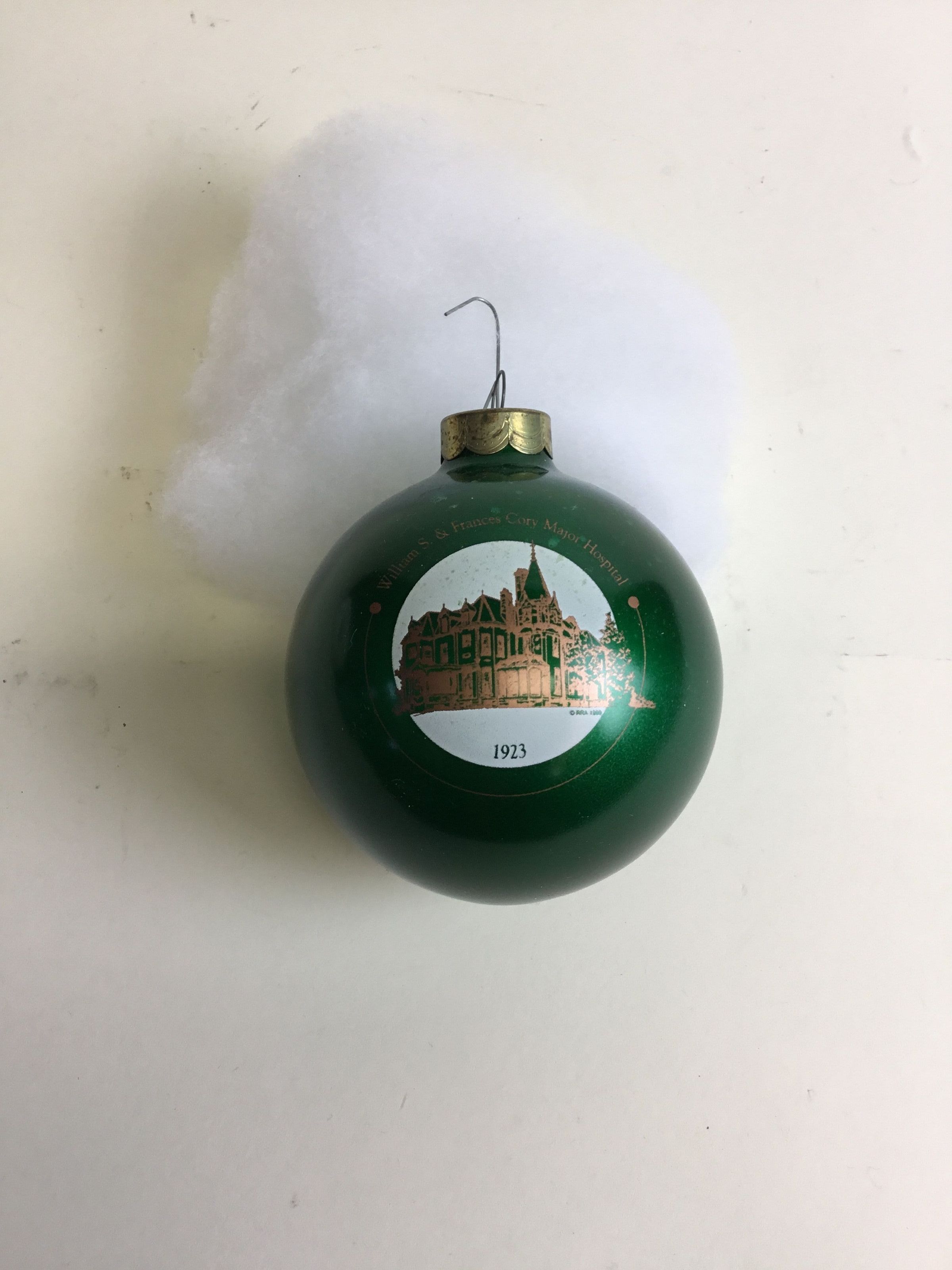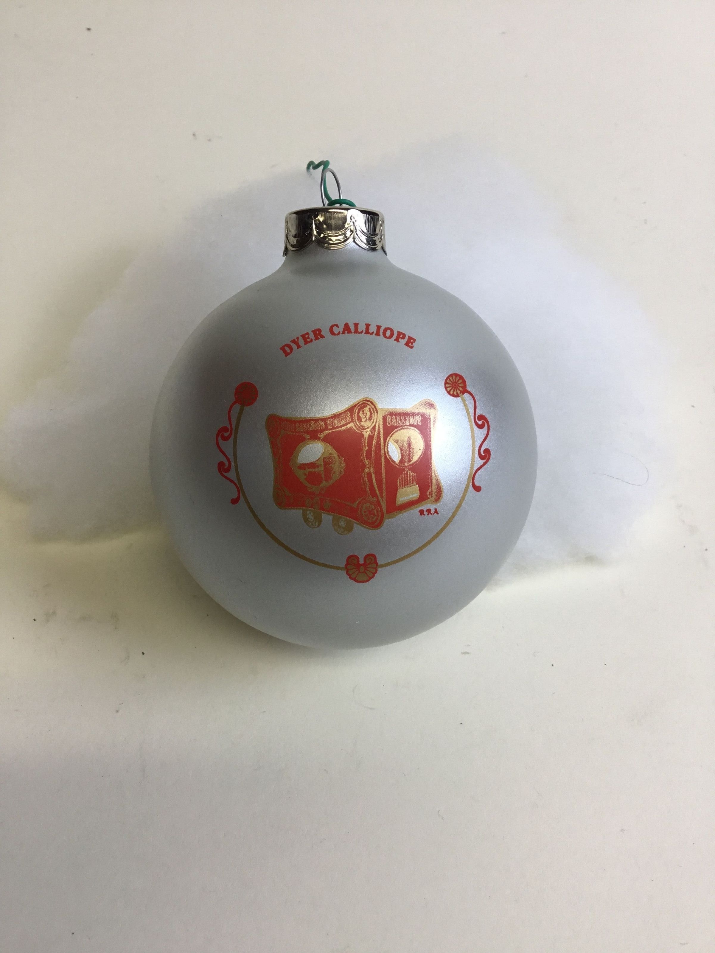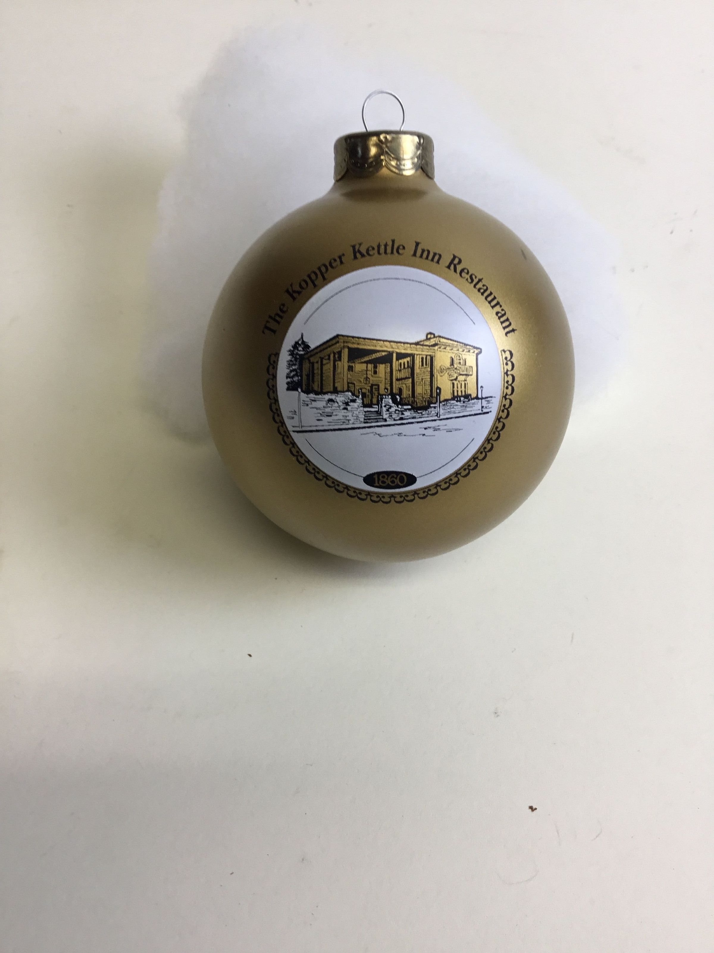 Set of 11 Christmas gala ball ornaments with Shelby County landmarks on them. The boxes are inscribed: Treasured Scenes, Limited Edition Ornaments, Keystone Specialities, Butler, PA.