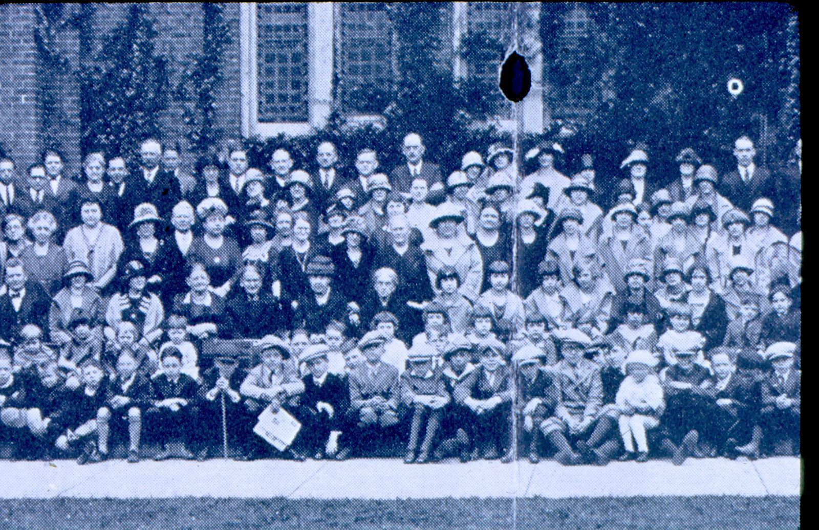 June 1, 1924." Congregation posed outside of a brick building. Church unknown.Collection