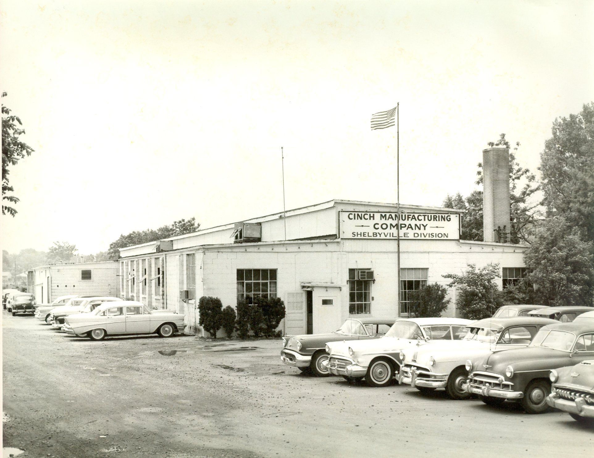 Cinch Manufacturing Company, exterior view, with automobiles in the parking lotDescription