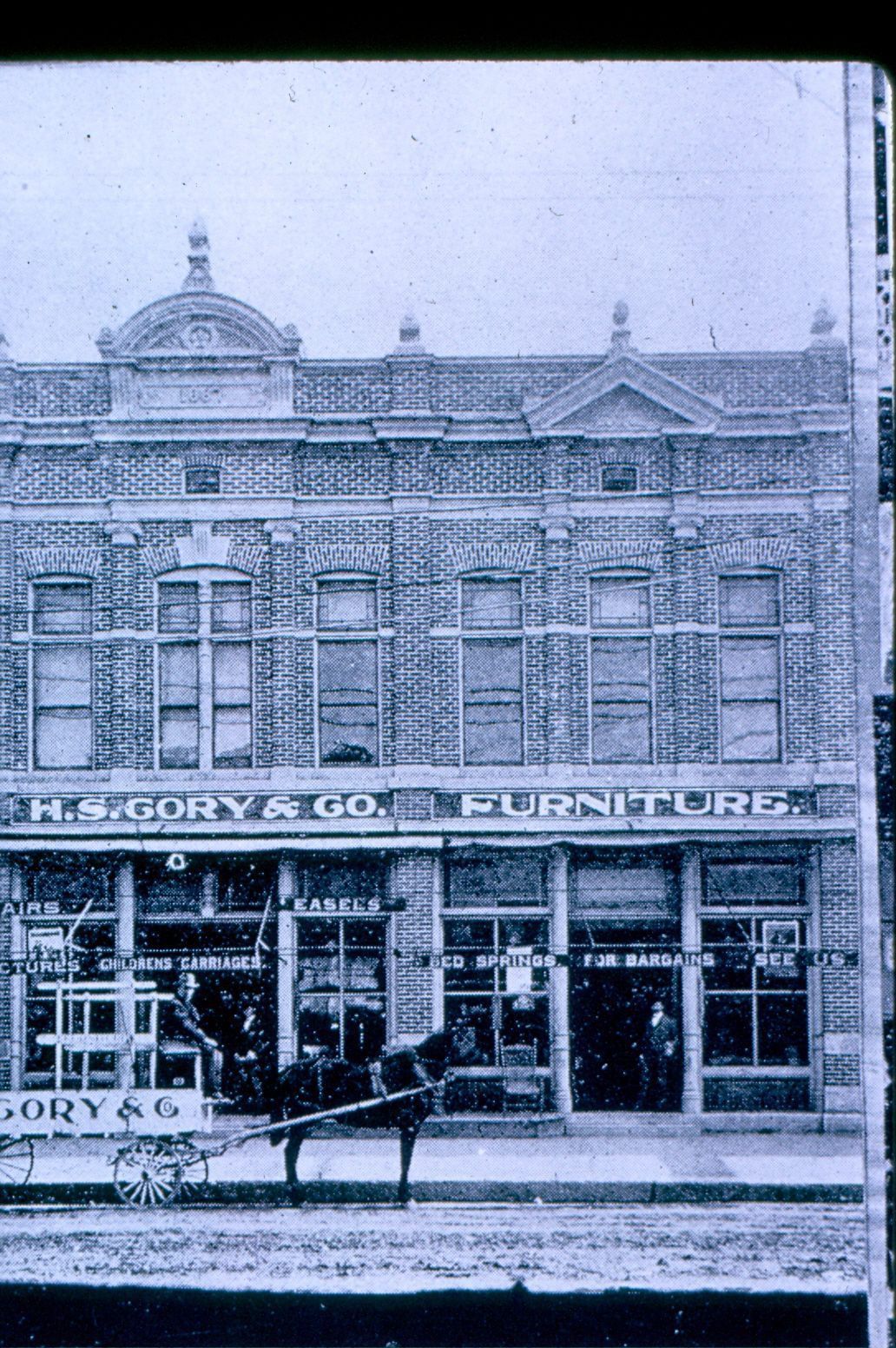 Donation, 07/26/2005. Black and white photographic slide in portrait format. Slide frame is marked: "S. Harrison H. S. Cory Furn./1902"Collection