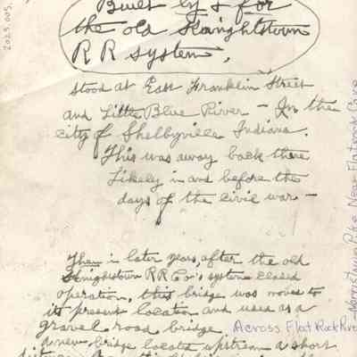 Back of Photo: Originally - This bridge - Built by & for the old Knightstown RR system. Stood at East Franklin Street and Little Blue River - In the city of Shelbyville Indiana. This was away back there Likely in and before the days of the civil war -