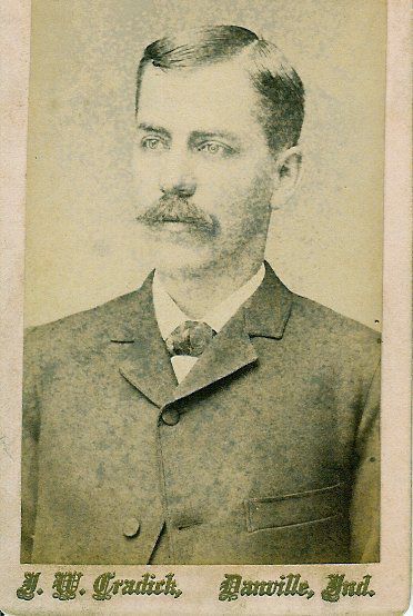 At neck is more a cravat than a tie. Bottom of mount marked: "J. W. Cradick, Danville, Ind." in Old English type. Back of mount inscribed in longhand with ink: "T. S. Davy/Middletown, Ill./Logan Co."Collection