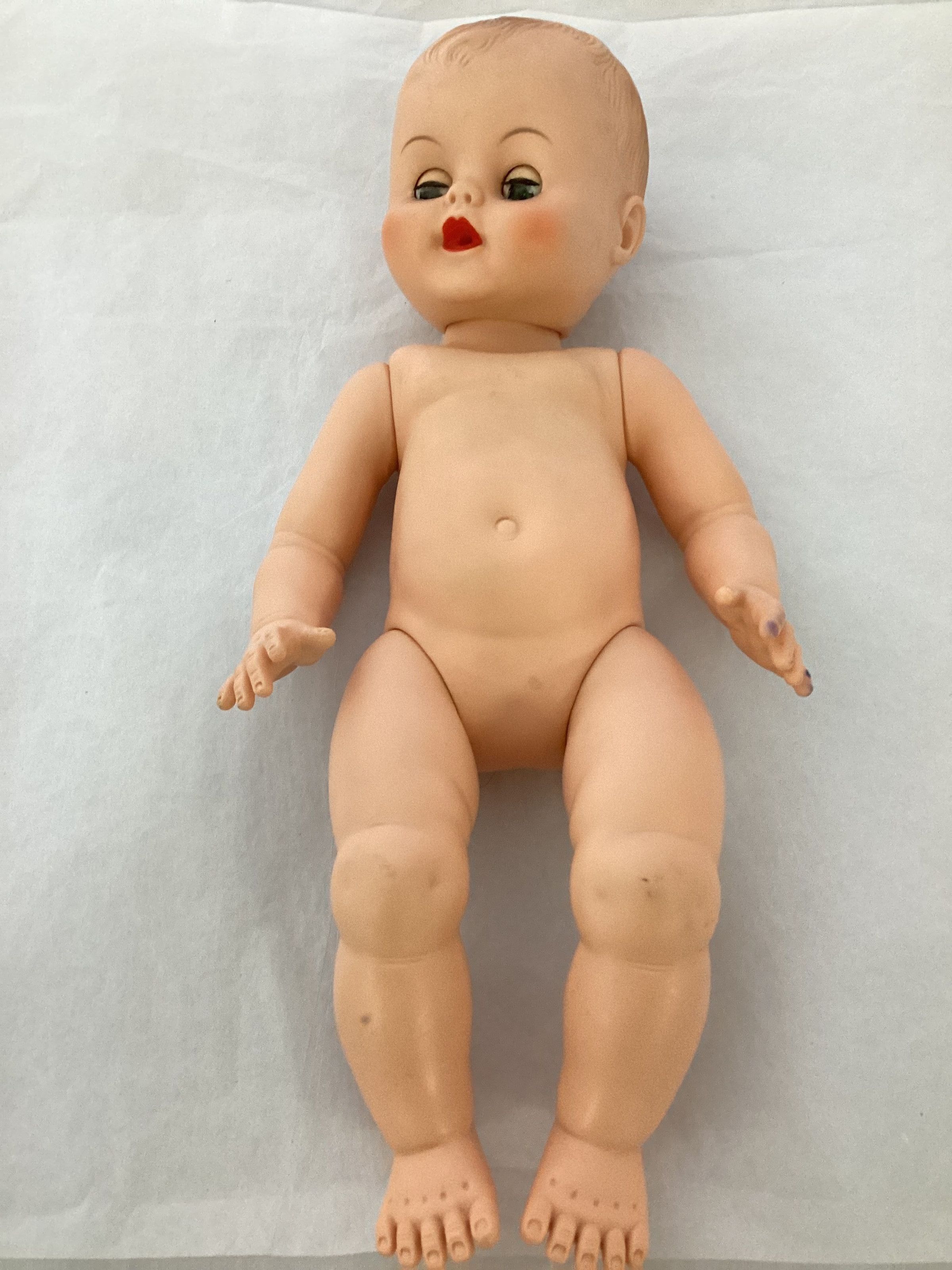Doll, male, blue sleeping eyes, mouth open, brown hair.Use