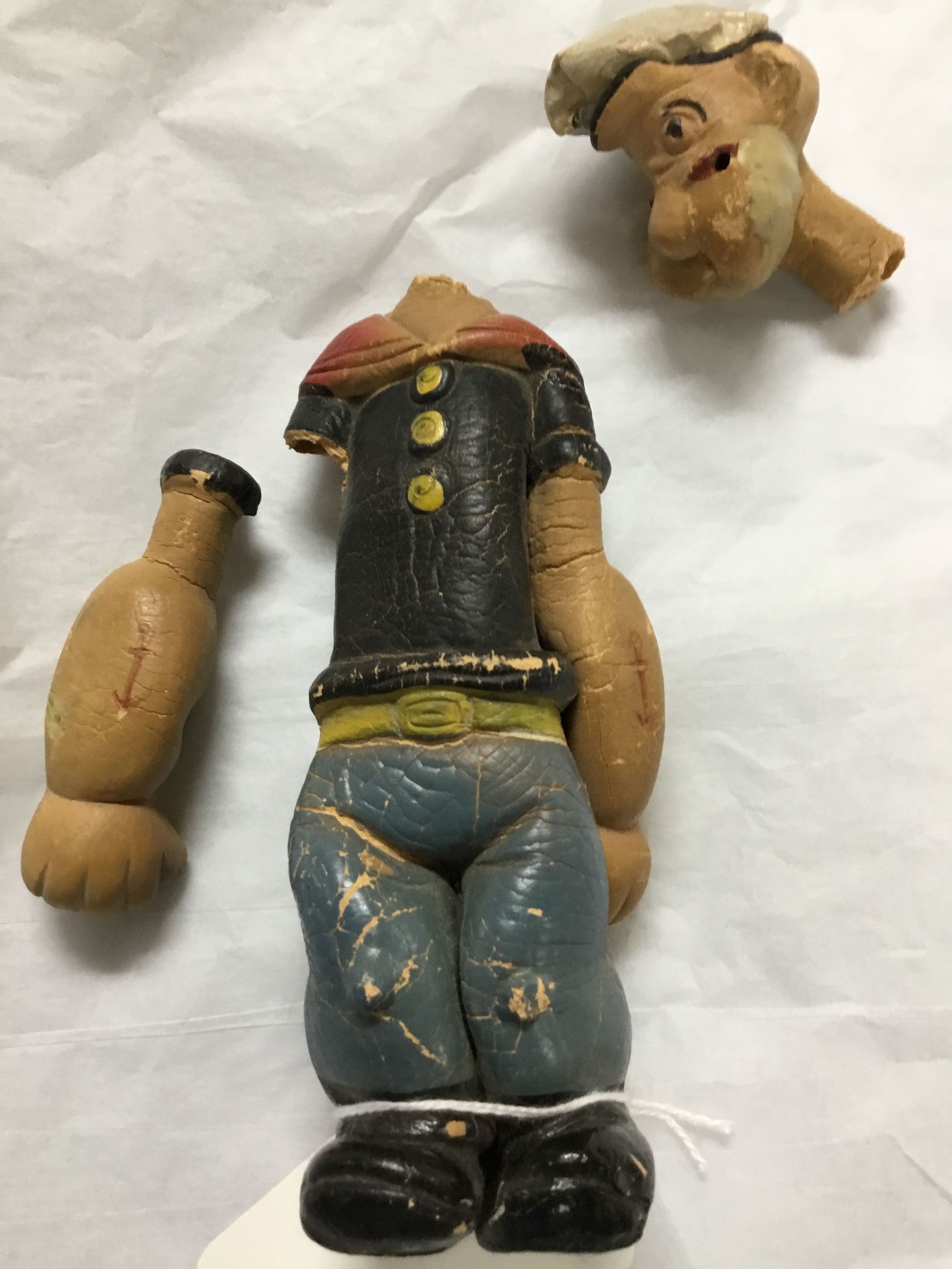 Doll, rubber, cartoon character "Popeye", blue pants and black shirtCollection