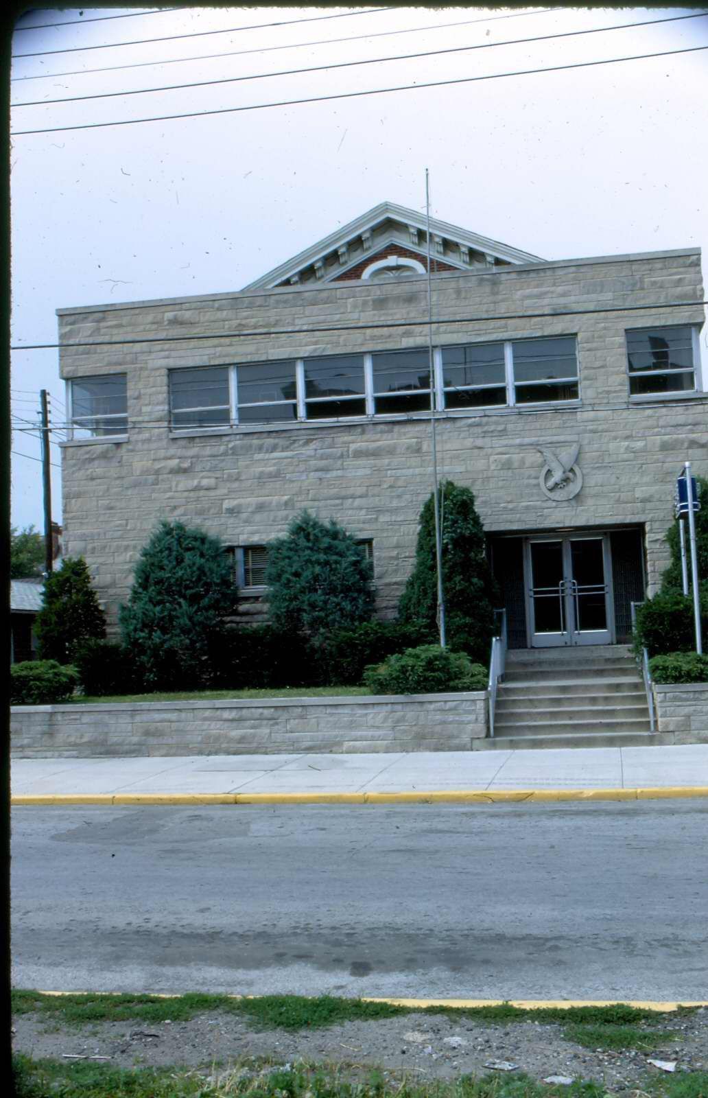 Donation, 07/26/2005. Full-color photographic slide in portrait format. Image is of the Eagles Lodge on East Franklin Street.Collection