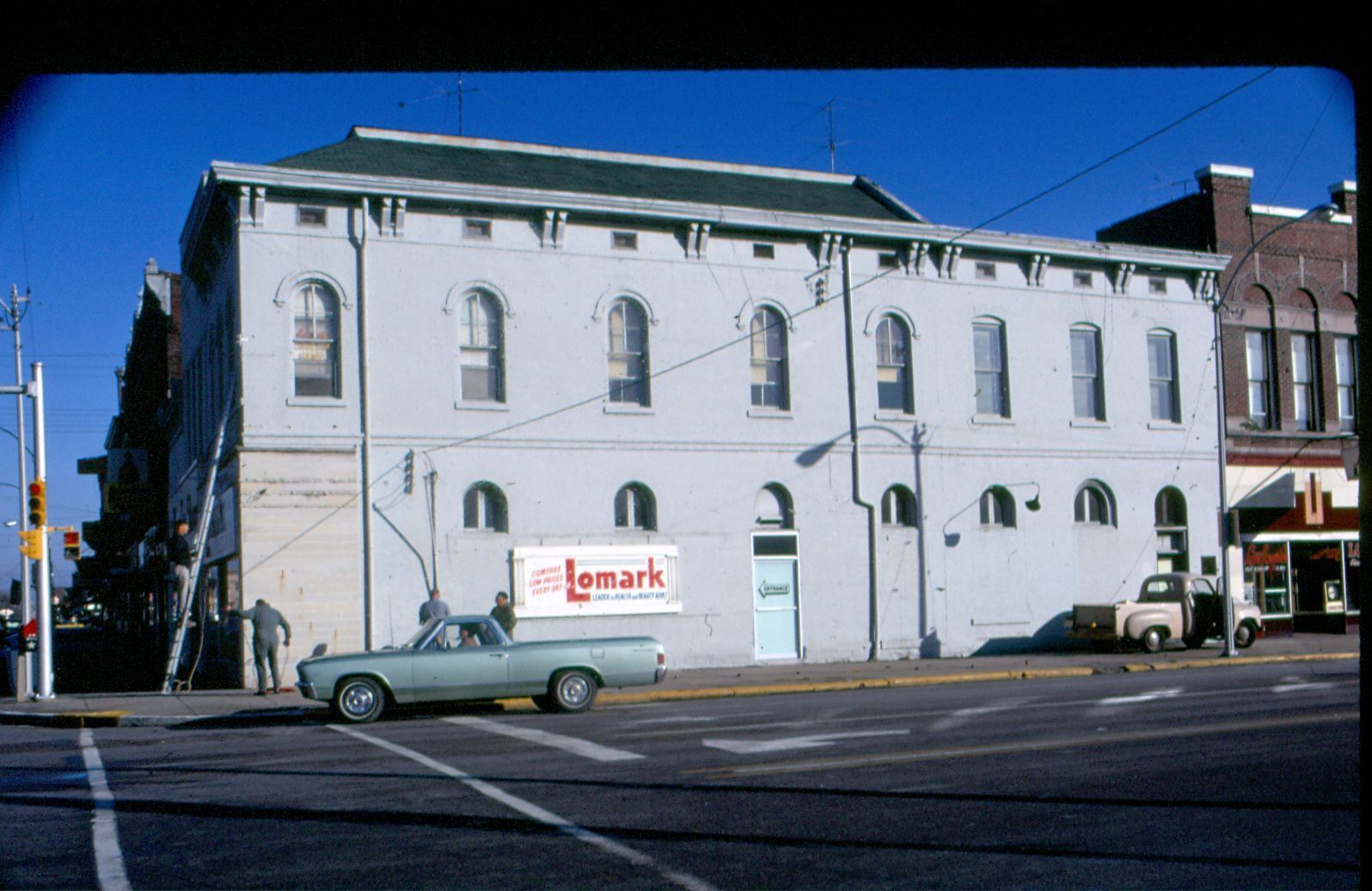 Image is of the northeast corner of East Broadway Street and South Harrison Street. "Lomark" can be seen on a large gray building.Collection