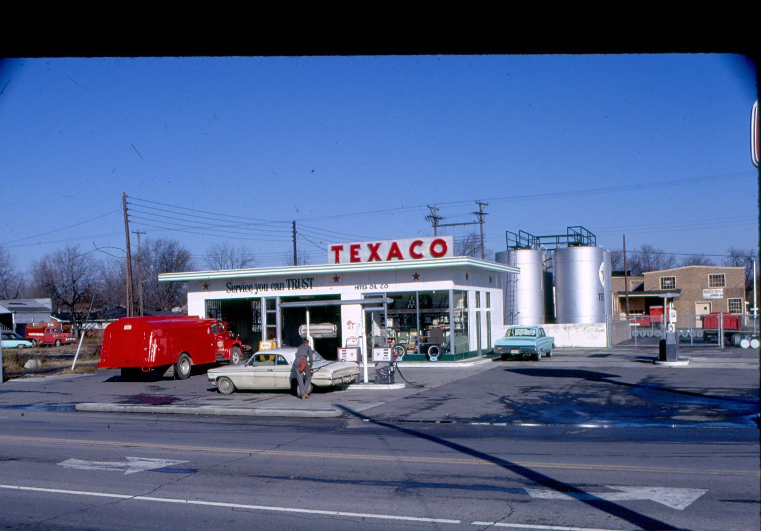 Image is of the Texaco Filling Station at East Broadway and Vine Streets.Collection