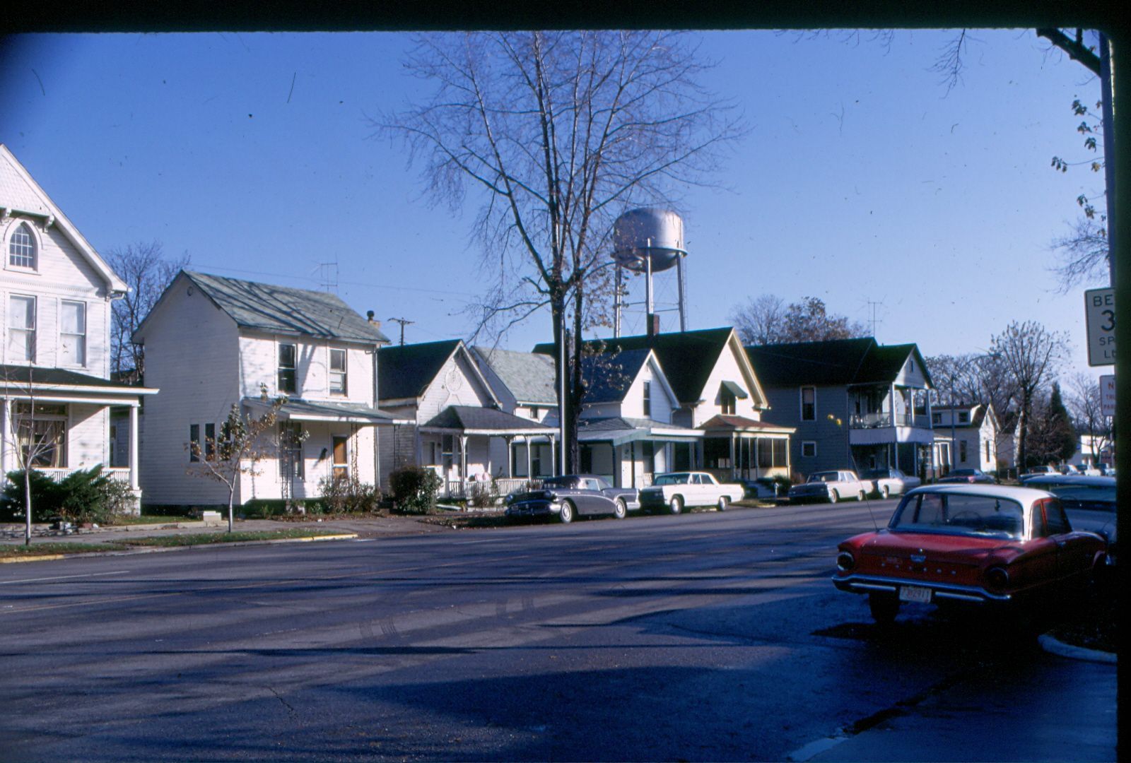 Image is of the north side of East Broadway in the second block showing residences and a water tower in the background.Collection