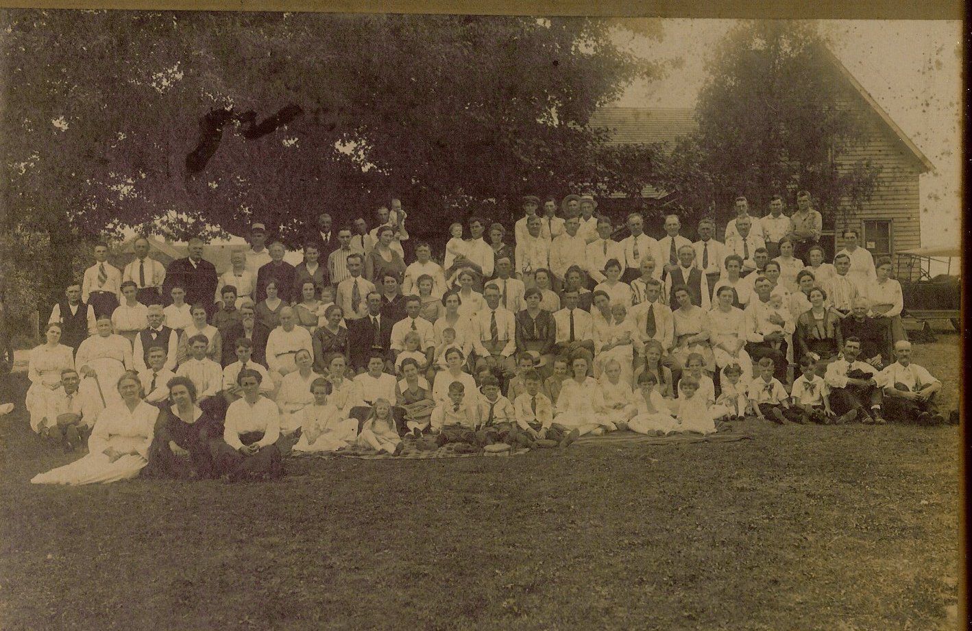 One 8x10 photograph, sepia-tone, no border, in a 2.25 mat. Donors said it was a family portrait of Emma Snyder family. Emma Snyder is the 2nd woman, in the 2nd row, on the right side of the photograph (dressed in black).Collection