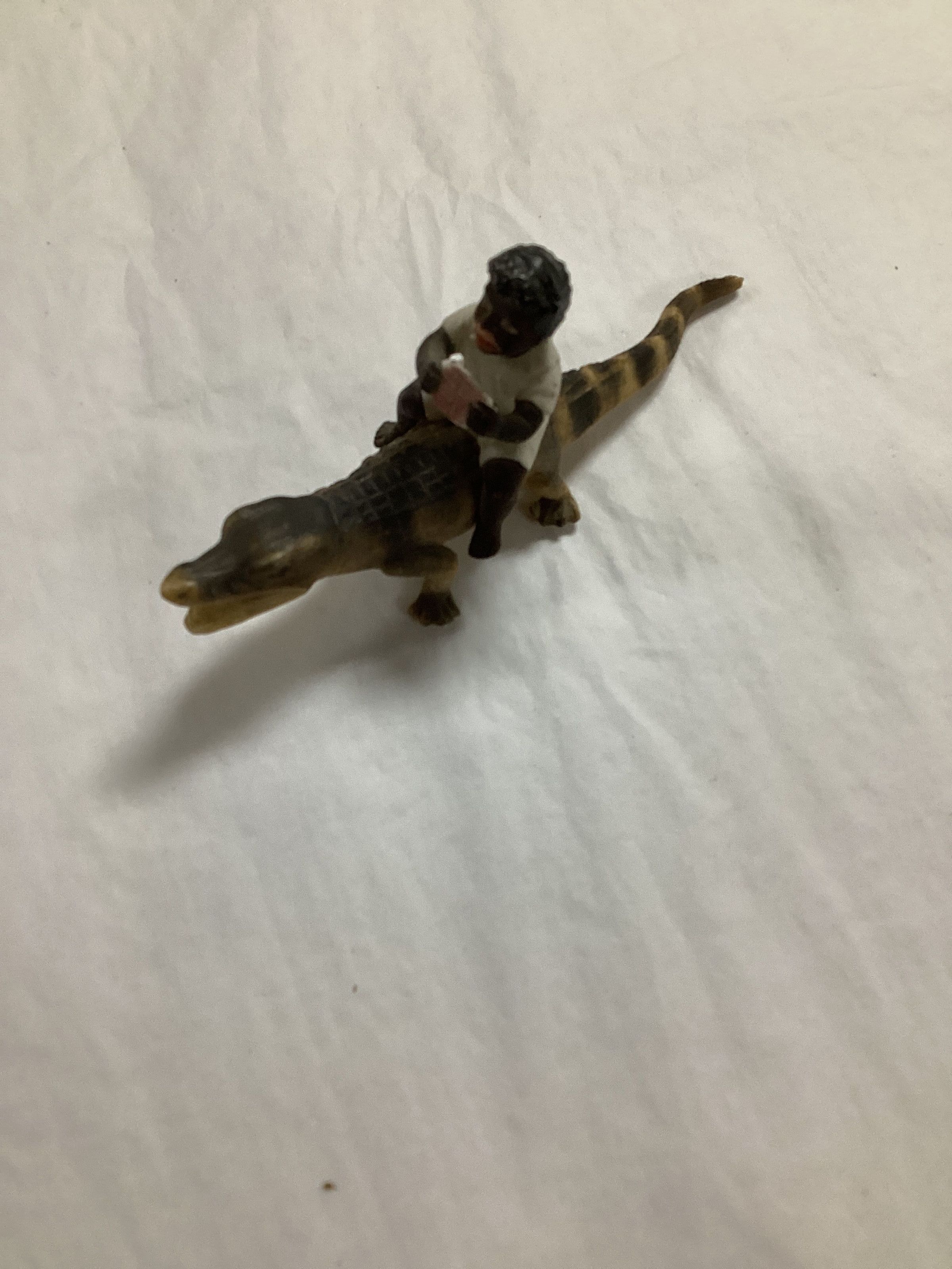 Figurine is a young Negro by eating watermelon while sitting on an alligator.Collection