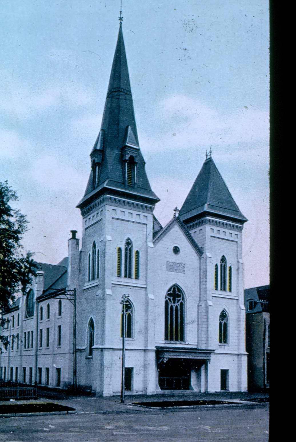 Color photographic slide in portrait format. Slide frame is marked: "W. Wash. First M. E. Church"Collection