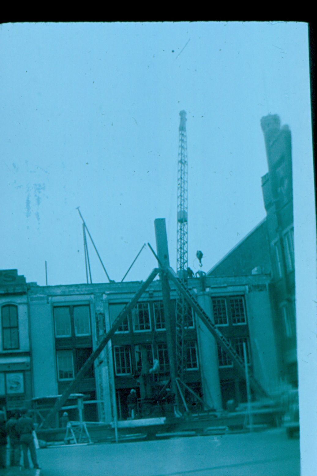 Donation, 07/26/2005. Black and white photographic slide in portrait format. Frame is marked: "Dismantling/of stone from/First National Bank/Public Square/1938/S.W."Collection