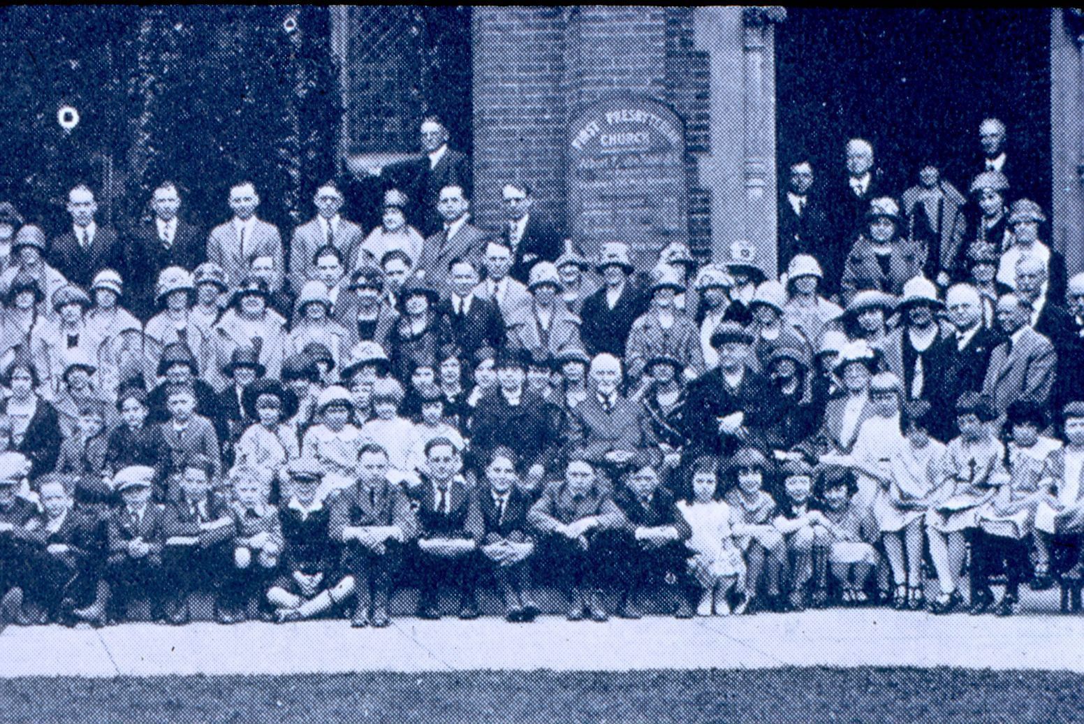 June 1, 1924." "First Presbyterian Church" on building beside the entrance.Collection