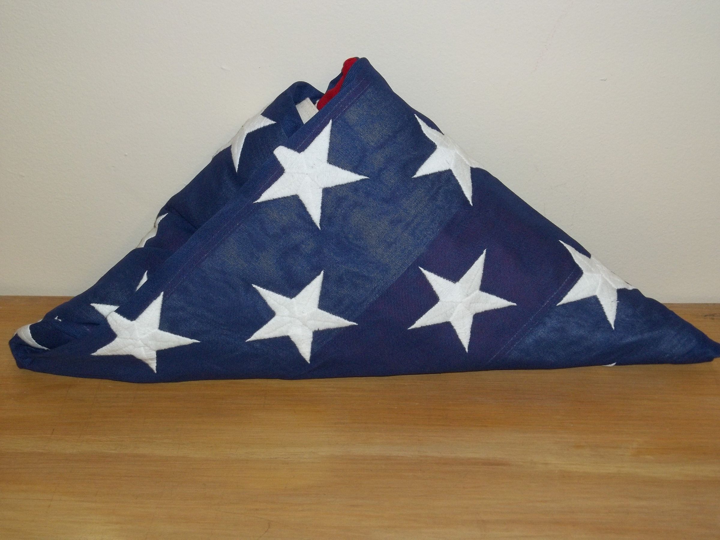 Folded, American flag from the burial of Roy Ortiz. Ortiz served in WW II and the Korean War.Use