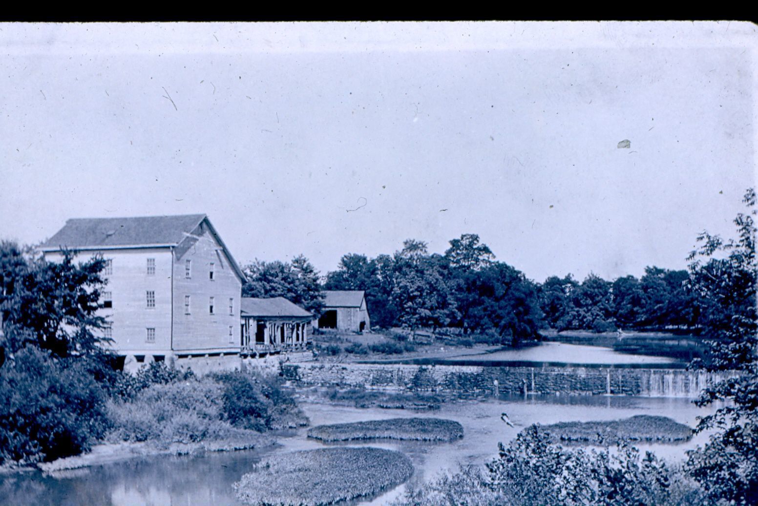 Donation, 07/26/2005. Black and white photographic slide in landscape format. This is a slide of a photograph. Flat Rock Cave Mill.Collection