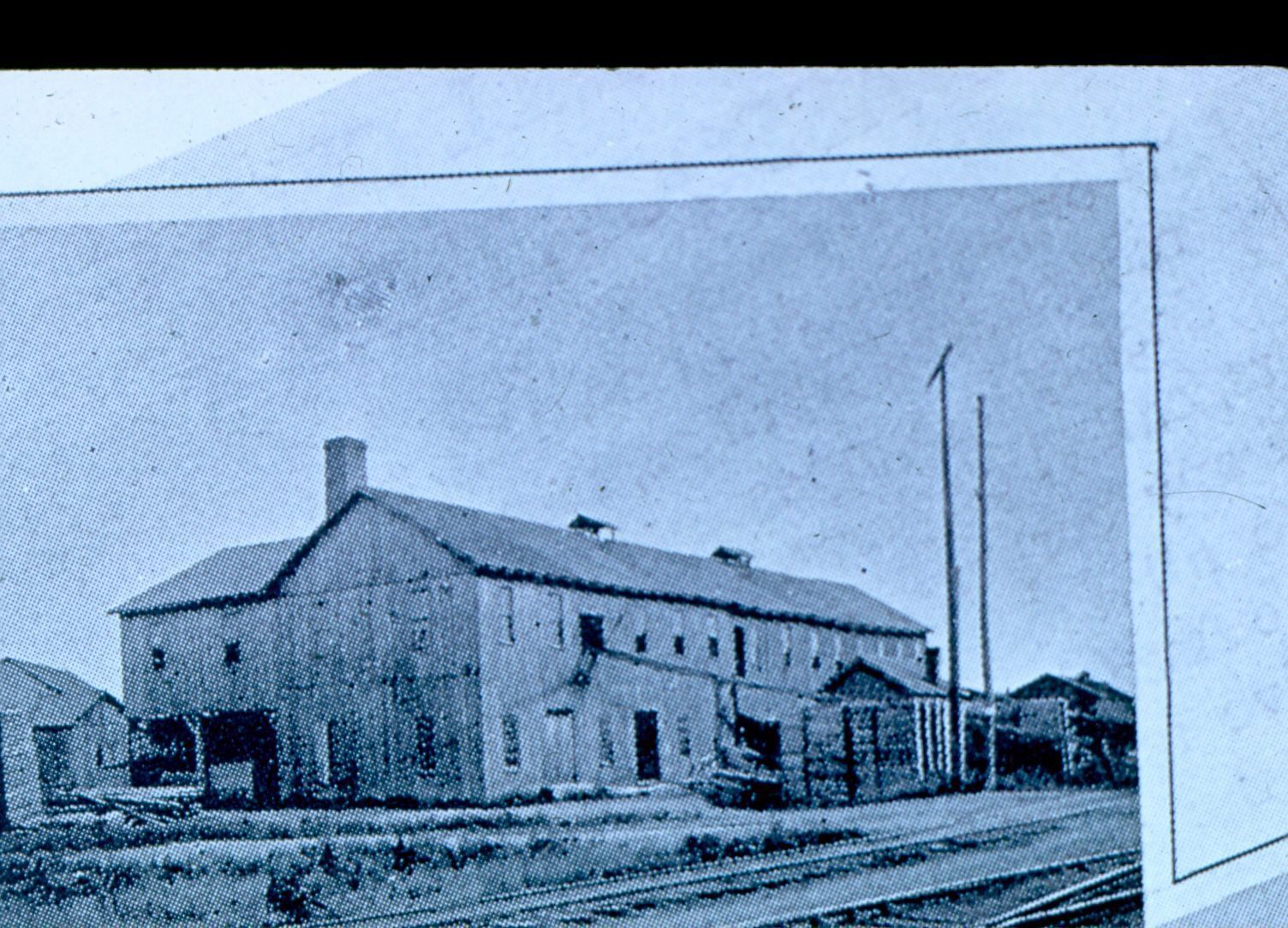 Black and white photographic slide in landscape format. Slide frame is marked: "Froeckling & Morner/Bentwood Factory."Collection