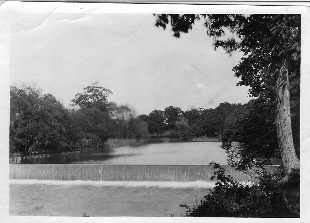 Donation, 07/26/2005. Black and white glossy photographic print in landscape format. On back in ink: "3-17-40/This dam in Flat Rock River-/at a point around the bend/in river down stream from/the cave-and in the/vicinity of the old mill that/used to stand there/C. C. (Stiffey) Shipp/caused it being built/within recent years/replacing another real old/dam that used to stand/in that immediate/ vicinity/Jess.E.Meloy"Collection