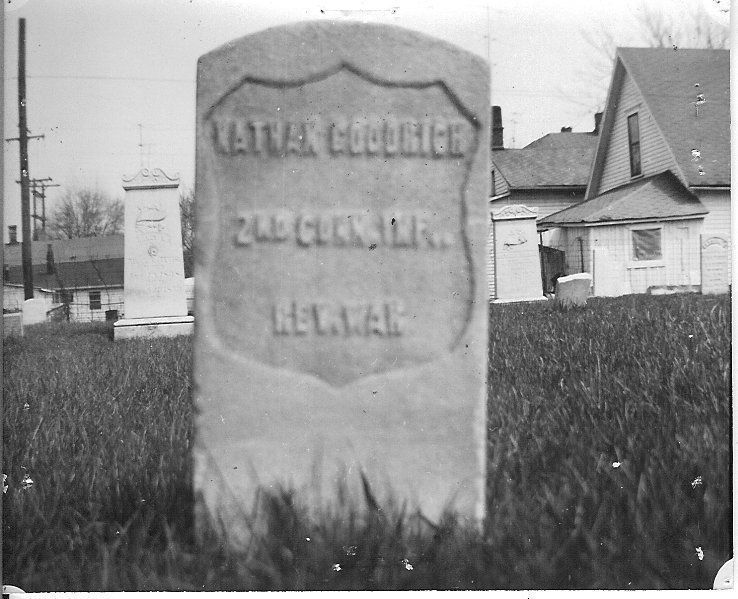 b & w print of tombstone for Nathan Goodrich 2nd Connecticut Infantry Revolutionary War; Revolutionary War Soldier buried in old Shelbyville City CemeteryCollection
