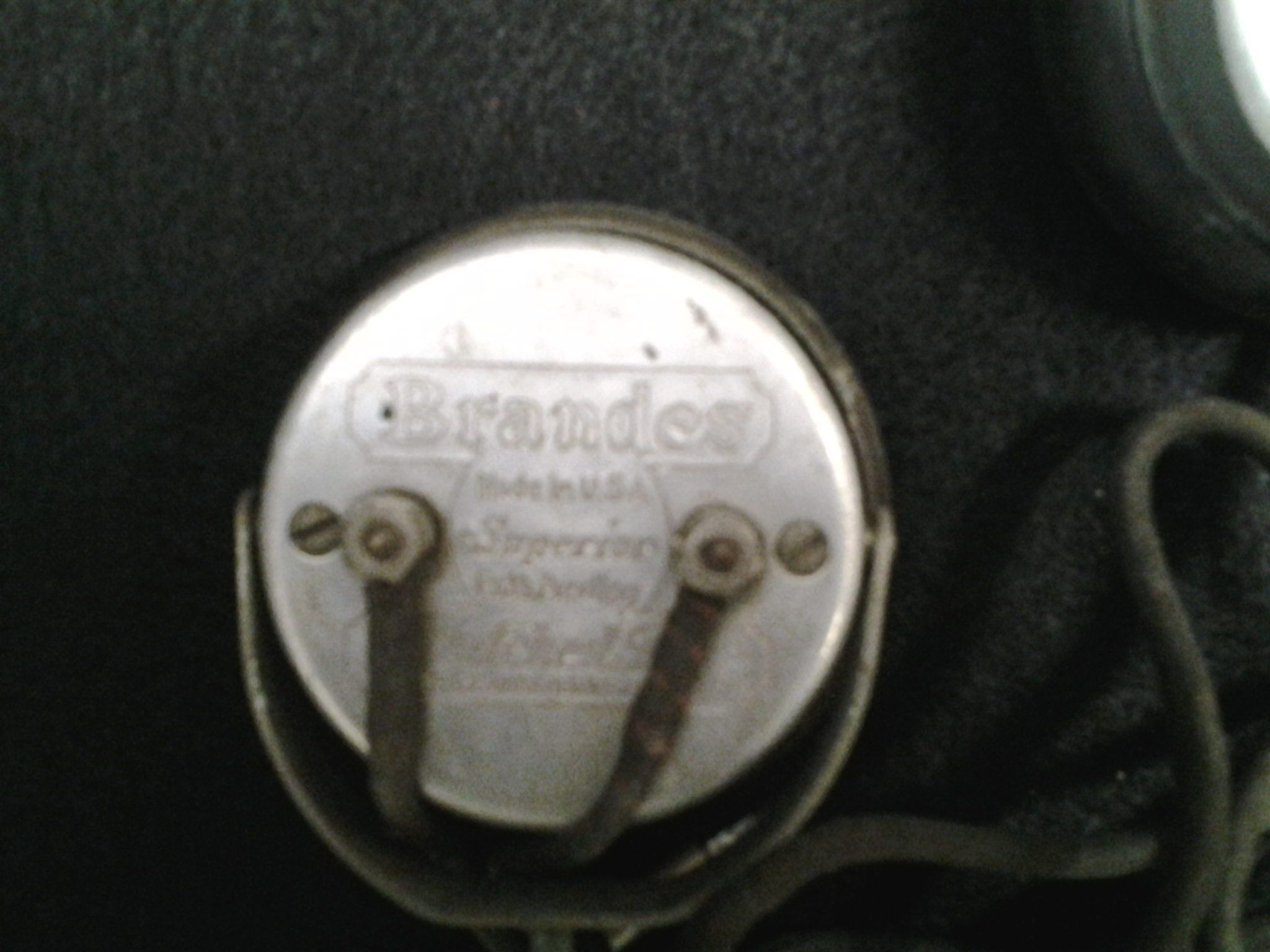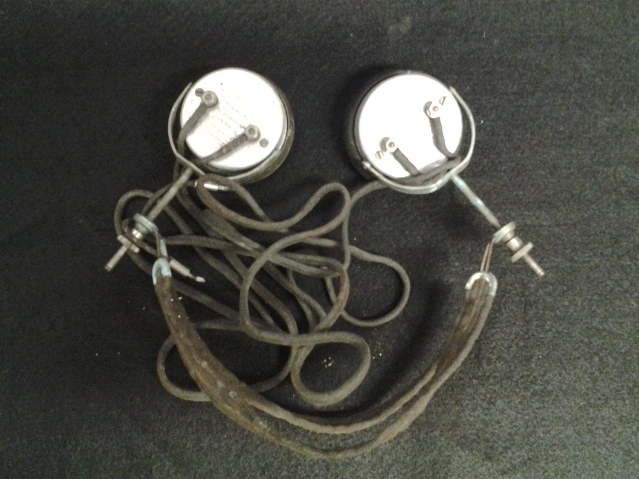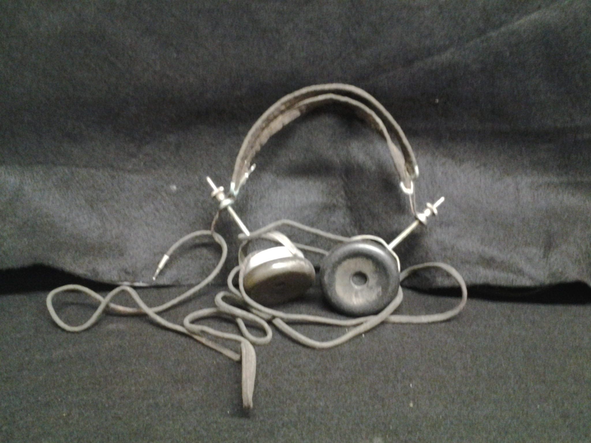 Headphones, high impedance, (25,000 OHM), used with crystal radio set, built by Bob Schlick and his father Howard Schlick.Collection