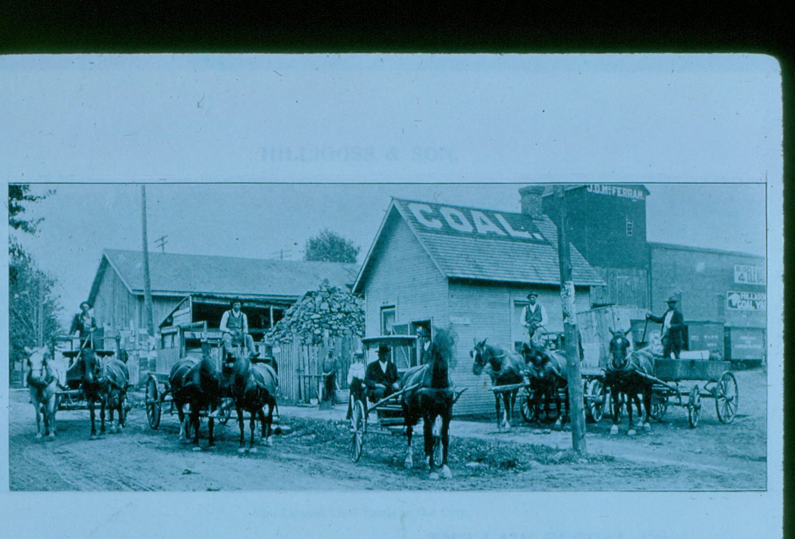 Donation, 07/26/2005. Black and white photographic slide in landscape format. This is a slide of a picture in a book. Slide frame is marked: "Hilligoss Coal Co./E. Franklin/1902."Collection